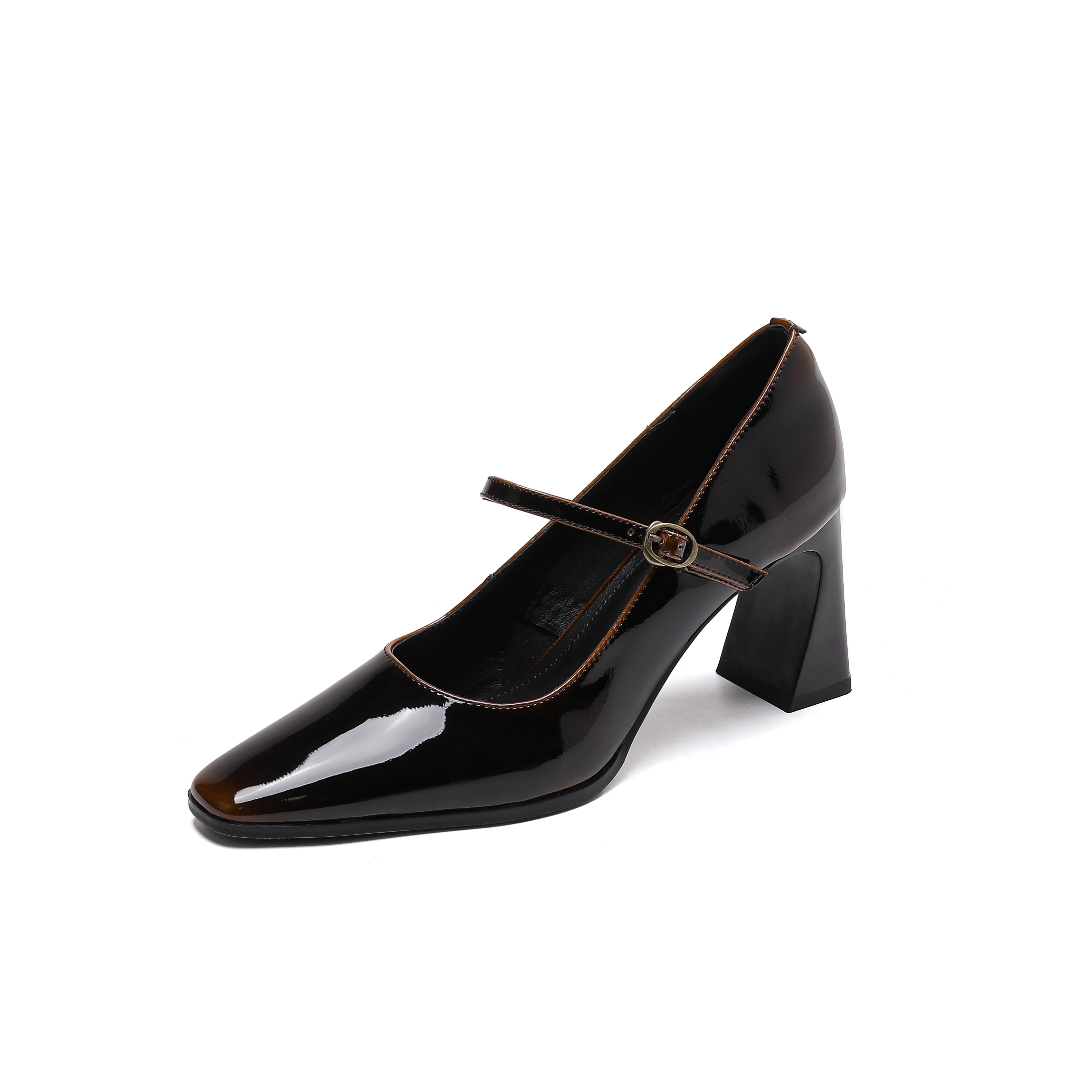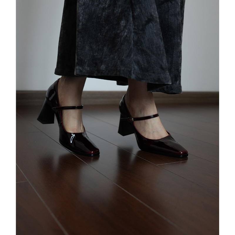 Fermina小方头浅口单鞋女粗跟高跟鞋简约气质一字带玛丽珍鞋新款