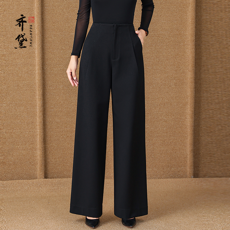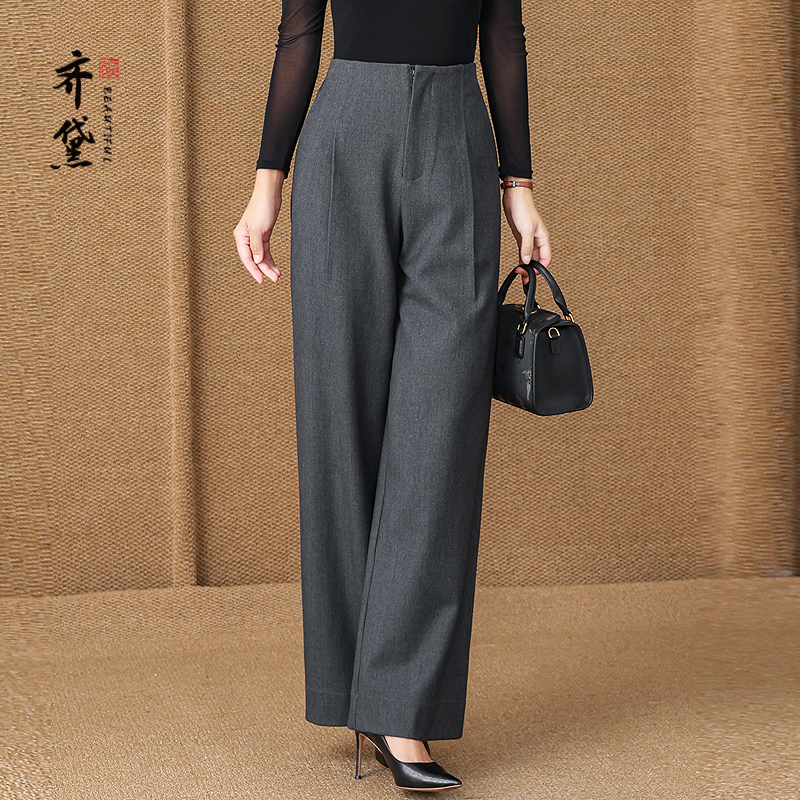 齐黛羊毛休闲裤女2025秋季新款专柜同款宽松显瘦纯色直筒阔腿裤子