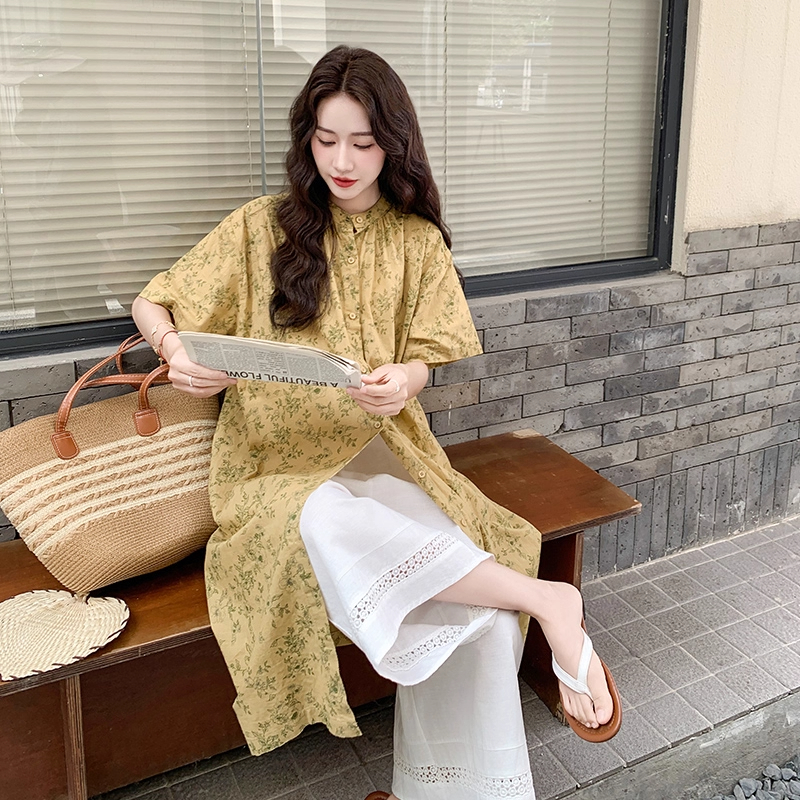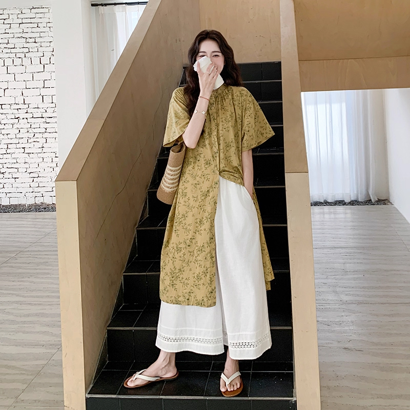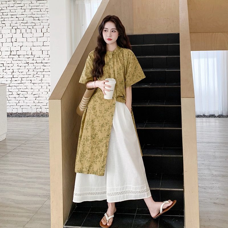 复古新中式碎花衬衫连衣裙套装女2025夏季新款慵懒风阔腿裤两件套