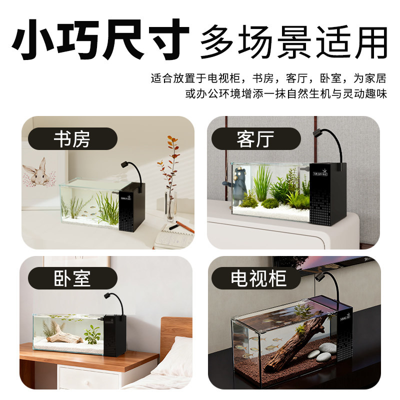 森森鱼缸2025新款小型家用超白玻璃溪流缸客厅阳台生态创意金鱼缸