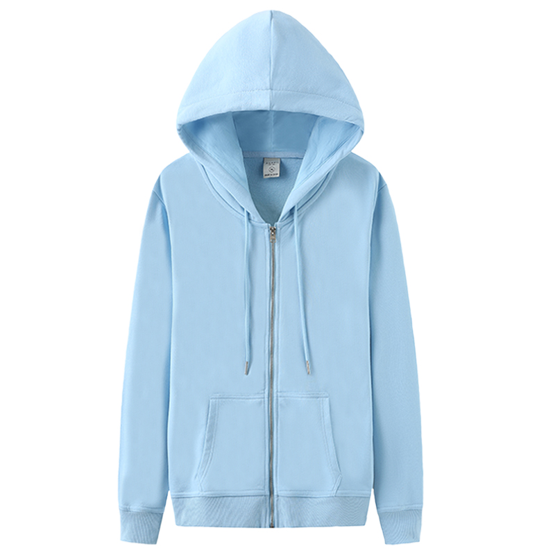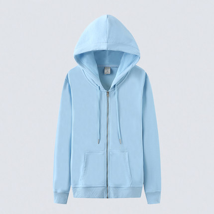 2025春季新款薄款浅蓝色拉链开衫卫衣女纯棉休闲运动连帽长袖外套