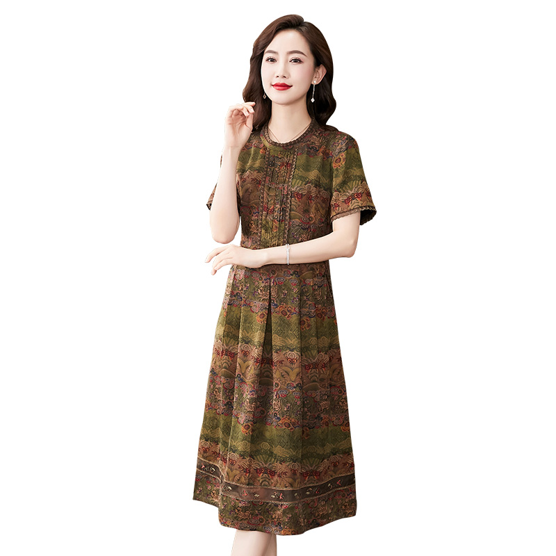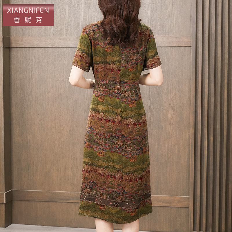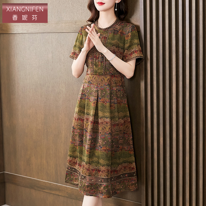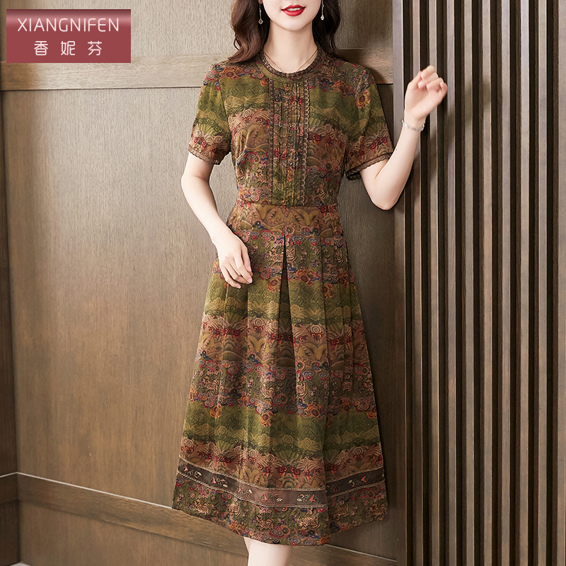 香妮芬高端精致品牌香云纱妈妈连衣裙2025新款夏季真丝桑蚕丝裙子