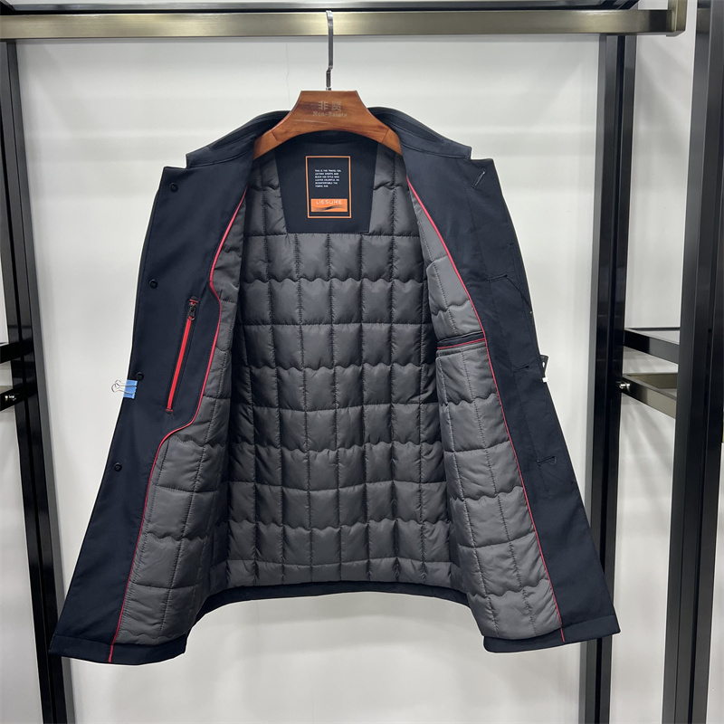 非贤品牌 男士 爸爸款翻领棉风系扣中长款黑蓝棉服商务保暖好打理