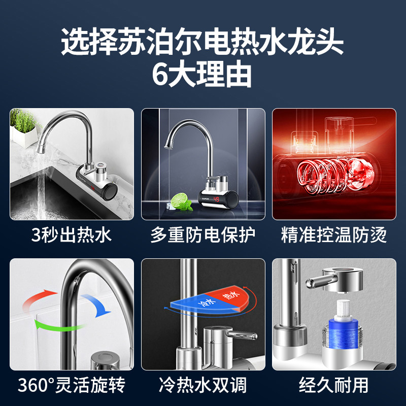 苏泊尔电热水龙头侧进水即热式速热加热厨房快速过水热热水器家用