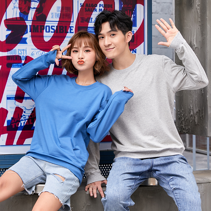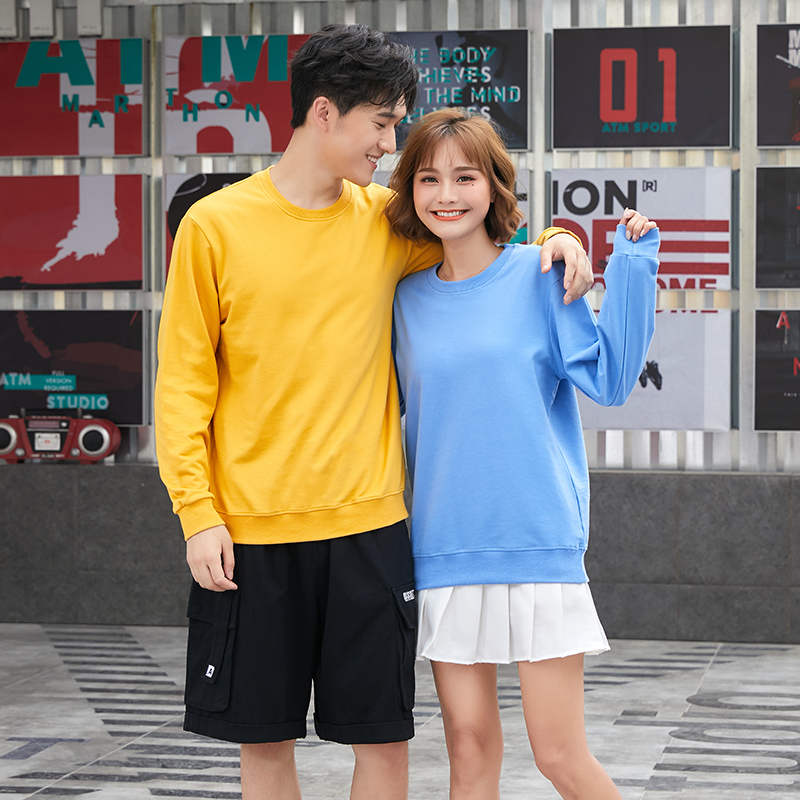 破产处理】100%重磅纯棉圆领套头卫衣男女同款长袖纯色大码打底衫