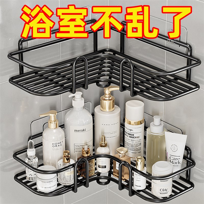 化妆室置物架三角浴室免打孔厕所转角挂架壁挂式洗手浴室收纳层架