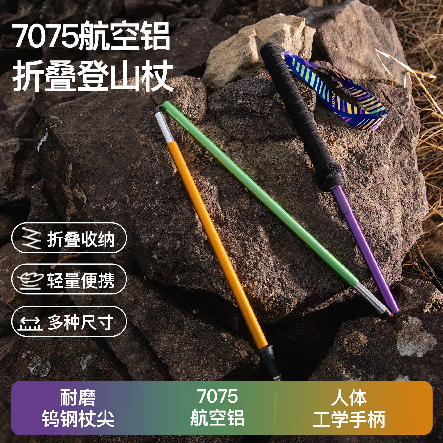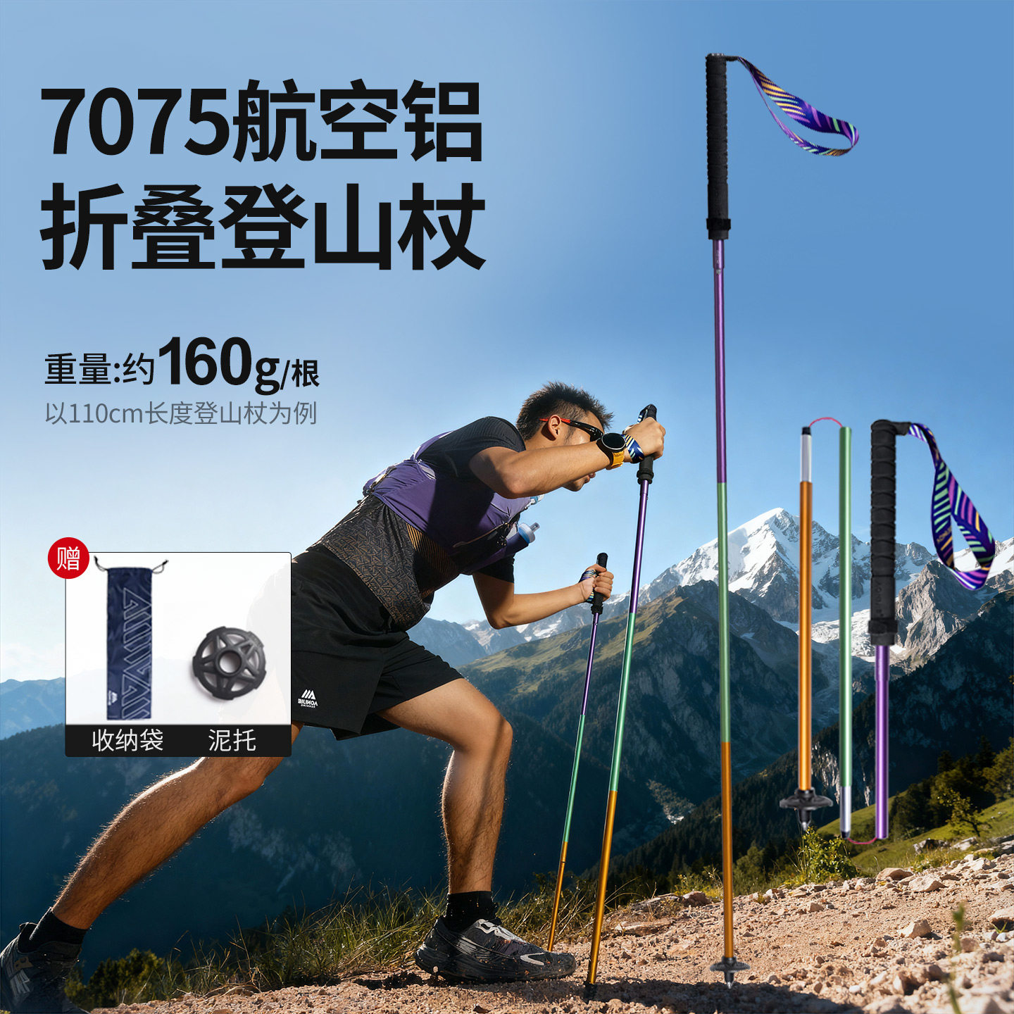奥尼捷铝合金折叠登山杖户外超轻专业越野跑登山手杖伸缩徒步装备