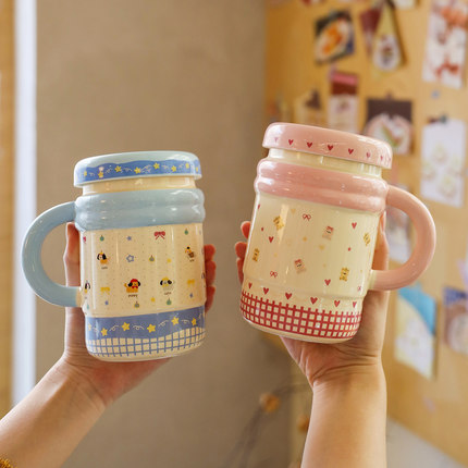 舍里可爱陶瓷马克杯带盖高颜值喝水杯设计感家用咖啡杯生日礼物女