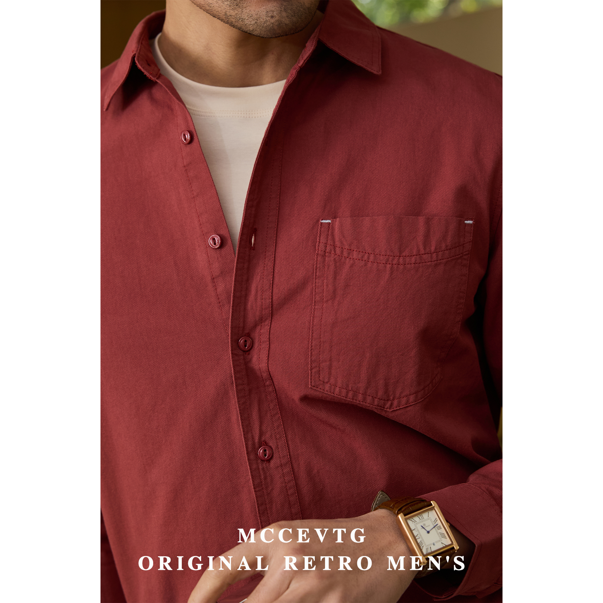 MCCEVTG安可拉红色男士衬衫长袖纯棉青年休闲通勤复古衬衣春秋季