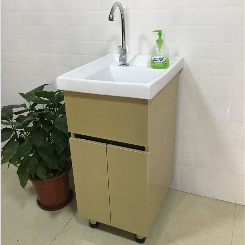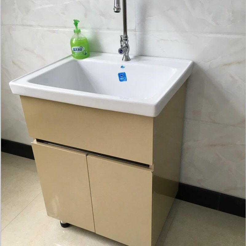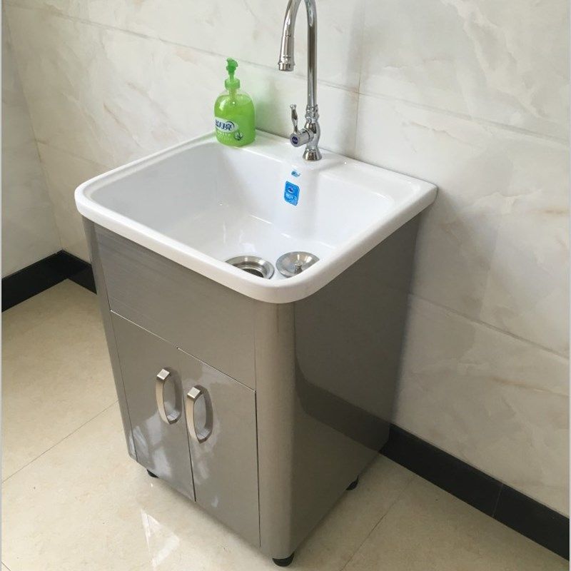 新款加厚不锈钢洗衣柜落地阳台洗衣池浴室柜陶瓷盆洗漱台水池台槽