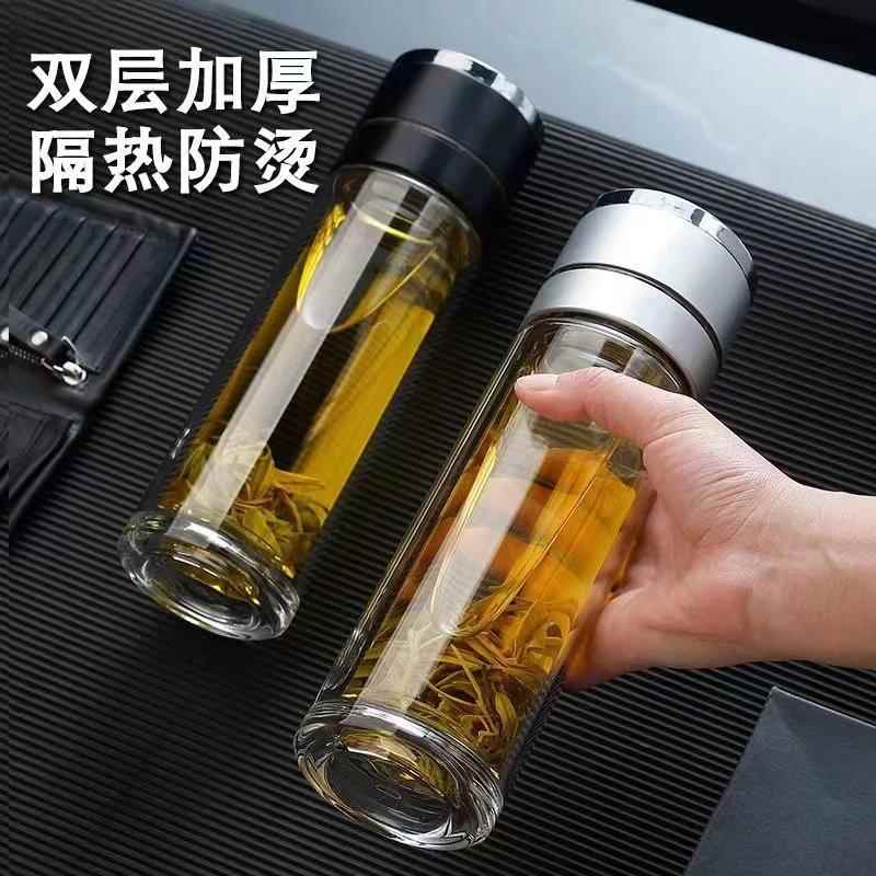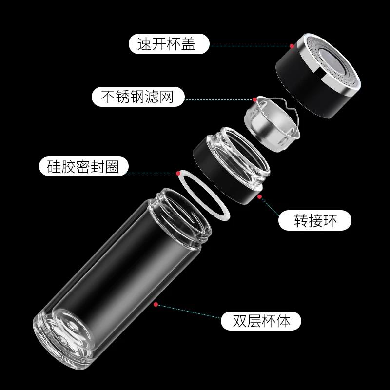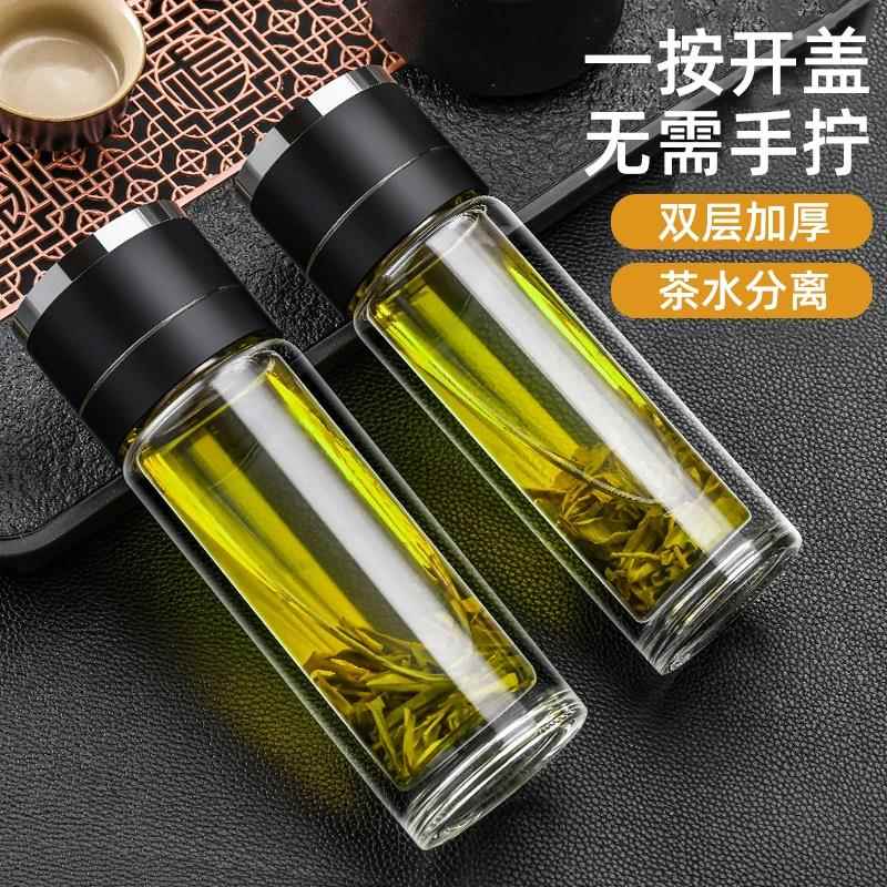 玻璃杯一键开盖车载杯钢化防摔打不碎双层玻璃杯速开男士泡茶水杯