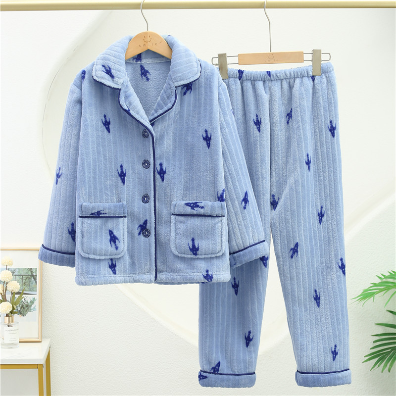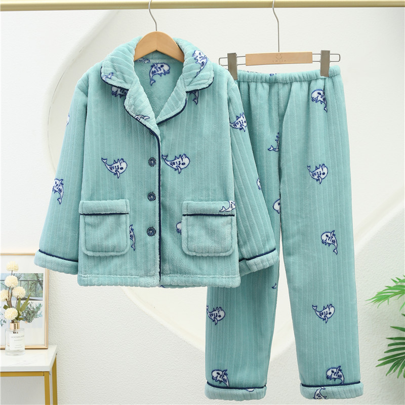 儿童睡衣男童珊瑚绒秋冬款女童法兰绒女孩冬季宝宝儿童家居服男孩
