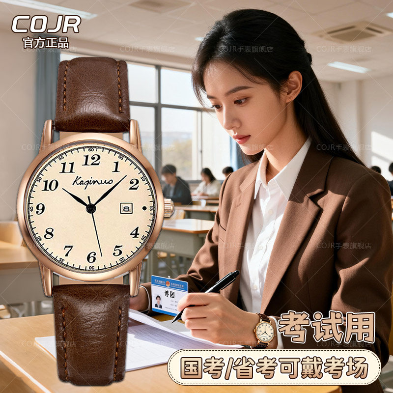 公务员考试专用手表女士女款可以带进考场只看时间机械静音石英表