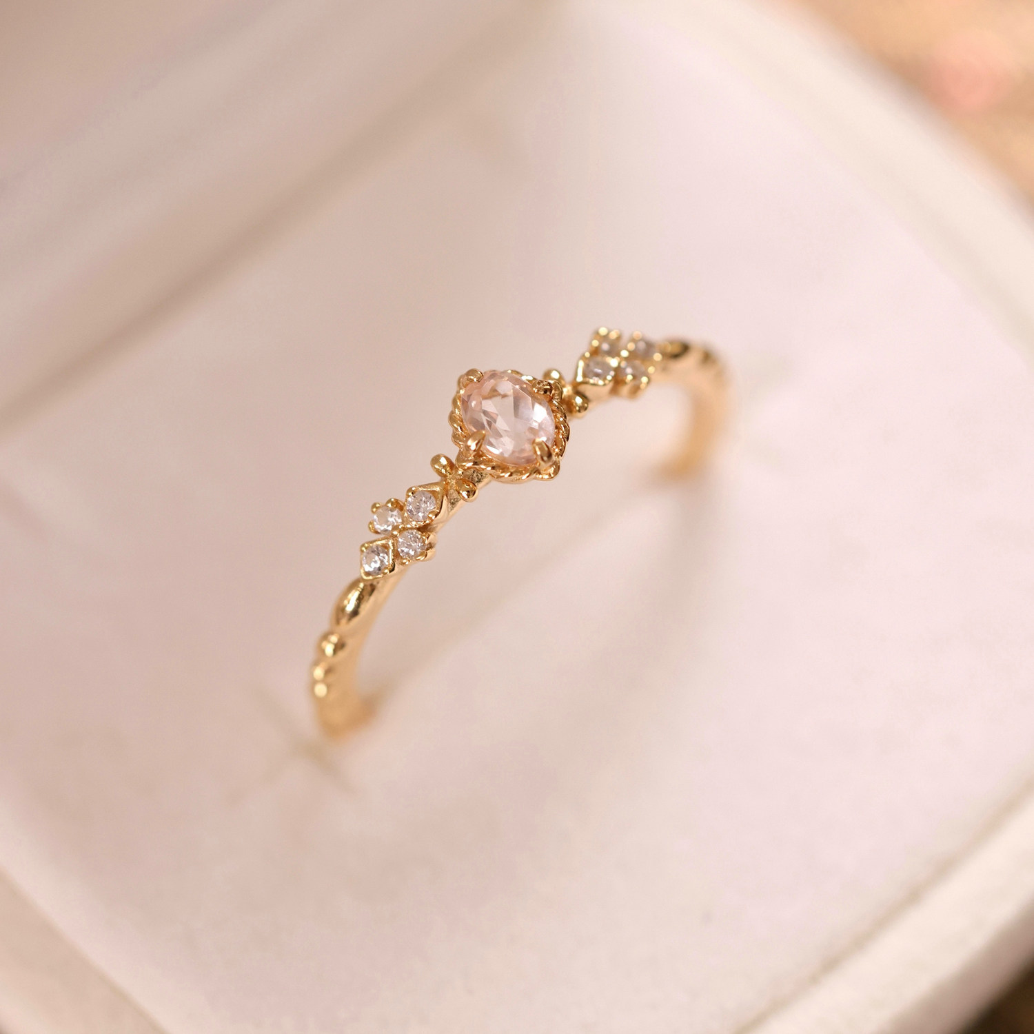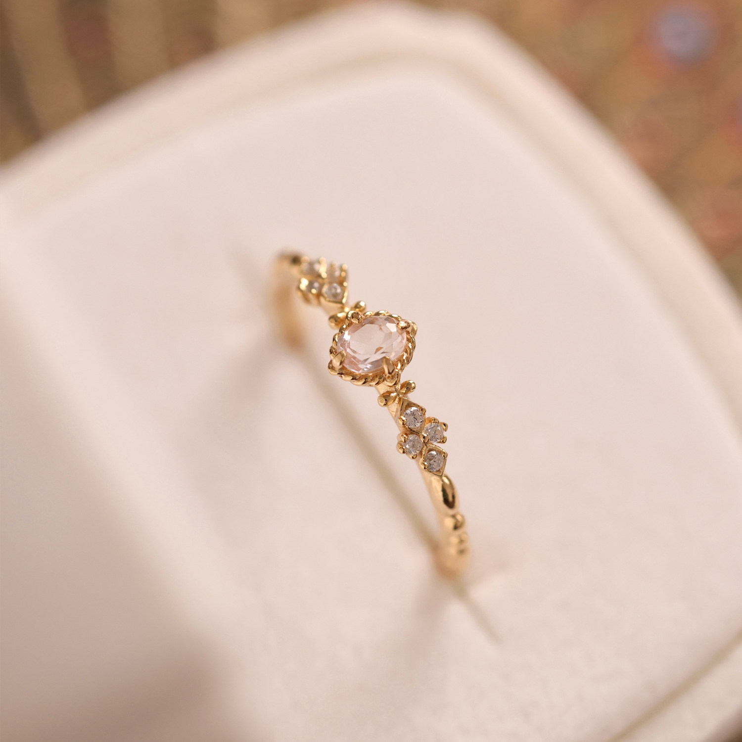 珞笙《她》天然摩根石彩宝优雅轻奢高级感银镀金戒指礼物送闺蜜
