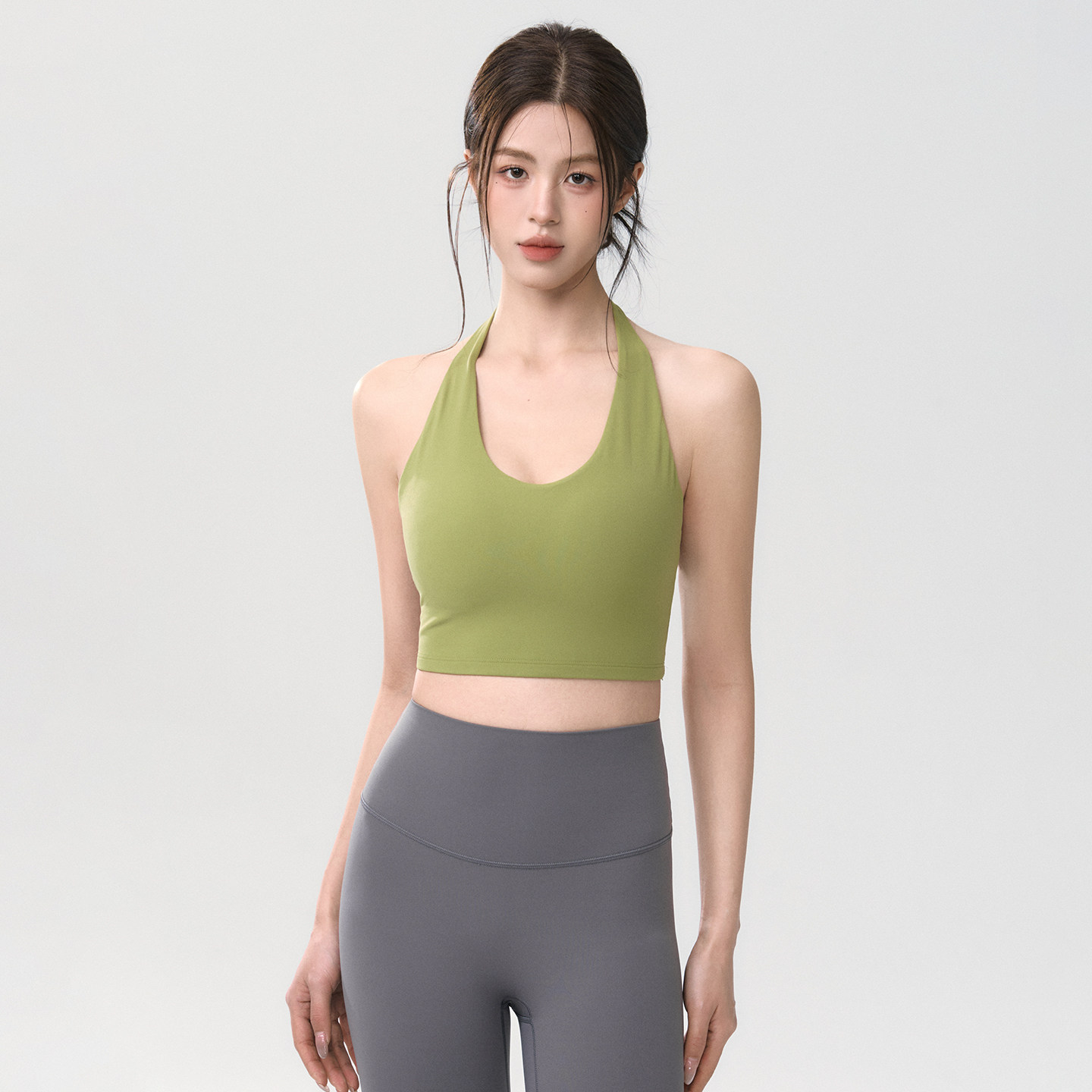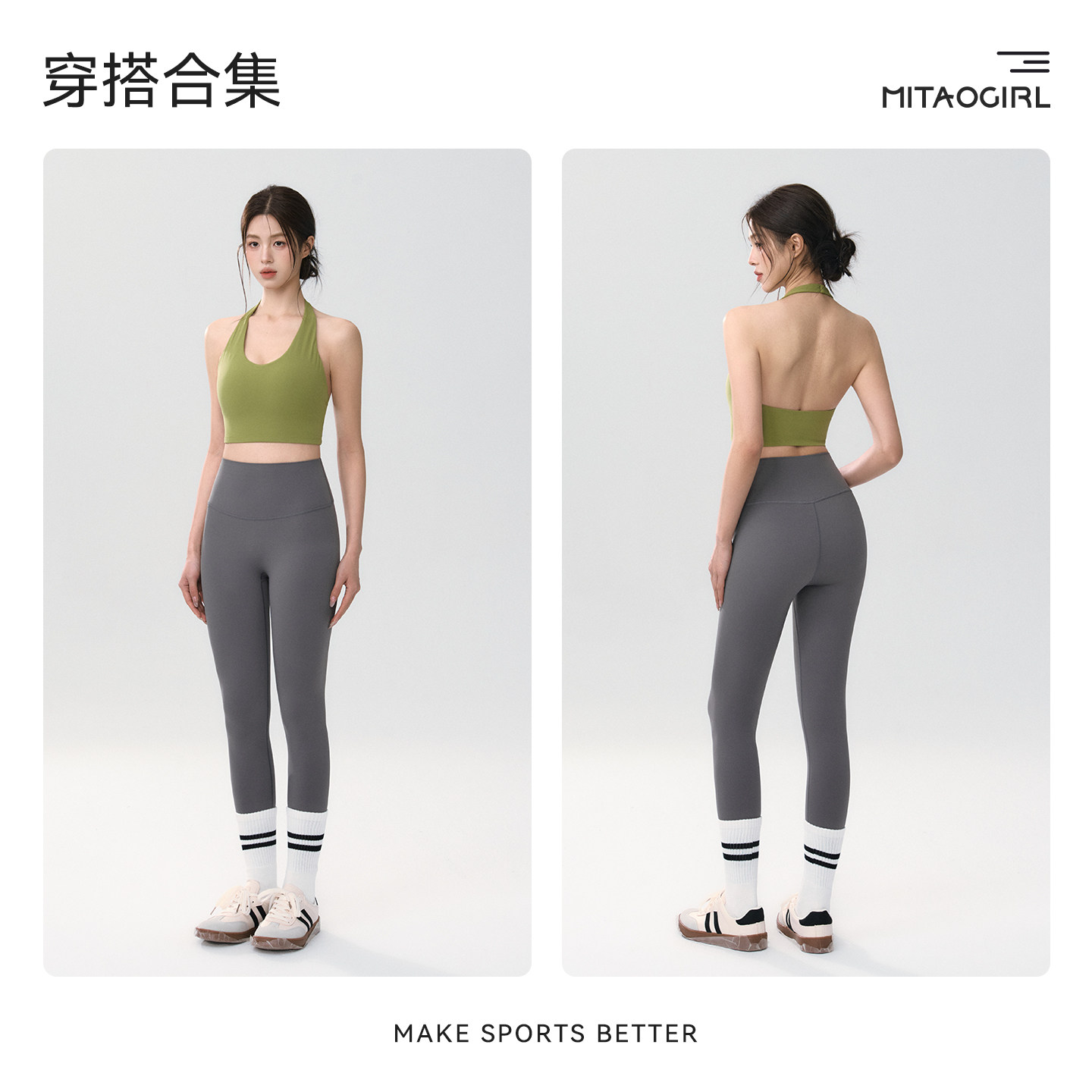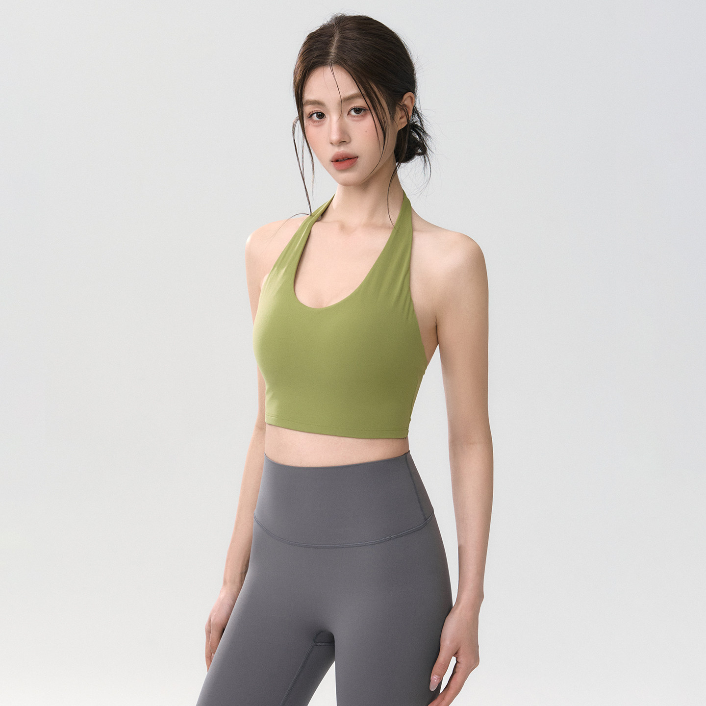 Mitaogirl挂脖美背运动内衣女裸感莱卡瑜伽文胸透气弹力健身背心