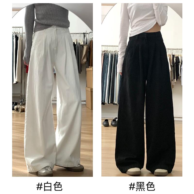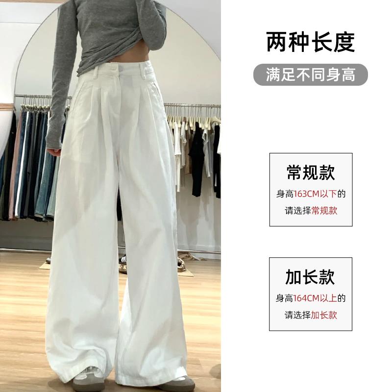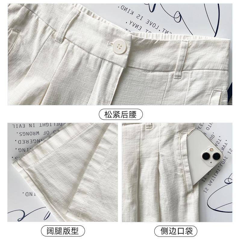 白色亚麻宽裤女夏季薄款高腰垂感老钱风宽松直筒棉麻西装休闲 裤