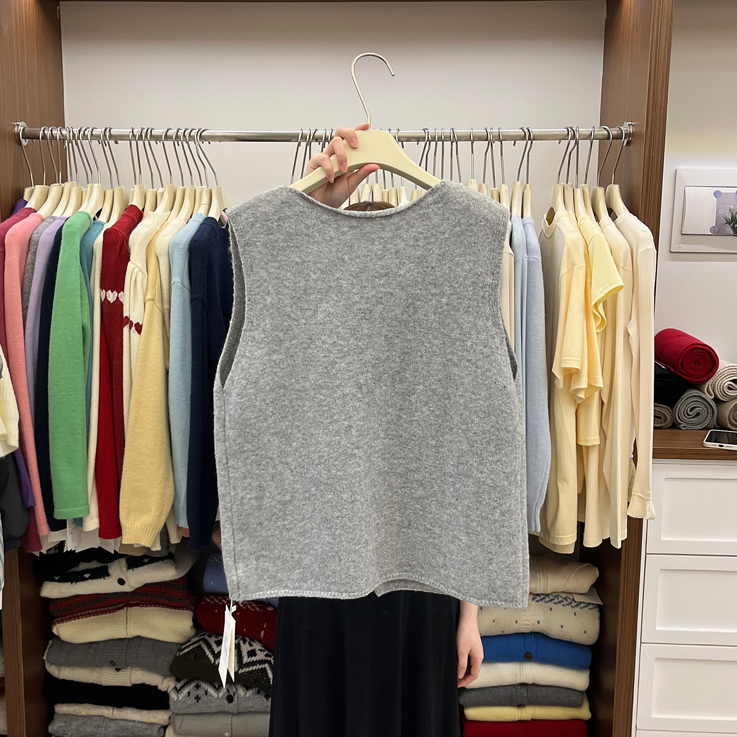 UND.MORE韩国东大门女装2025新款叠穿风马甲背心短款针织开衫马夹