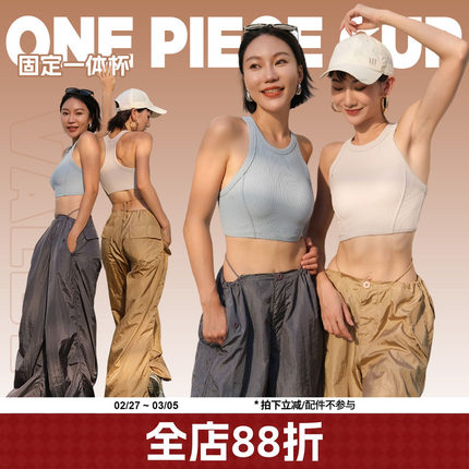 annerun工字背心一体式带胸垫美背跑步防震文胸运动内衣瑜伽服女