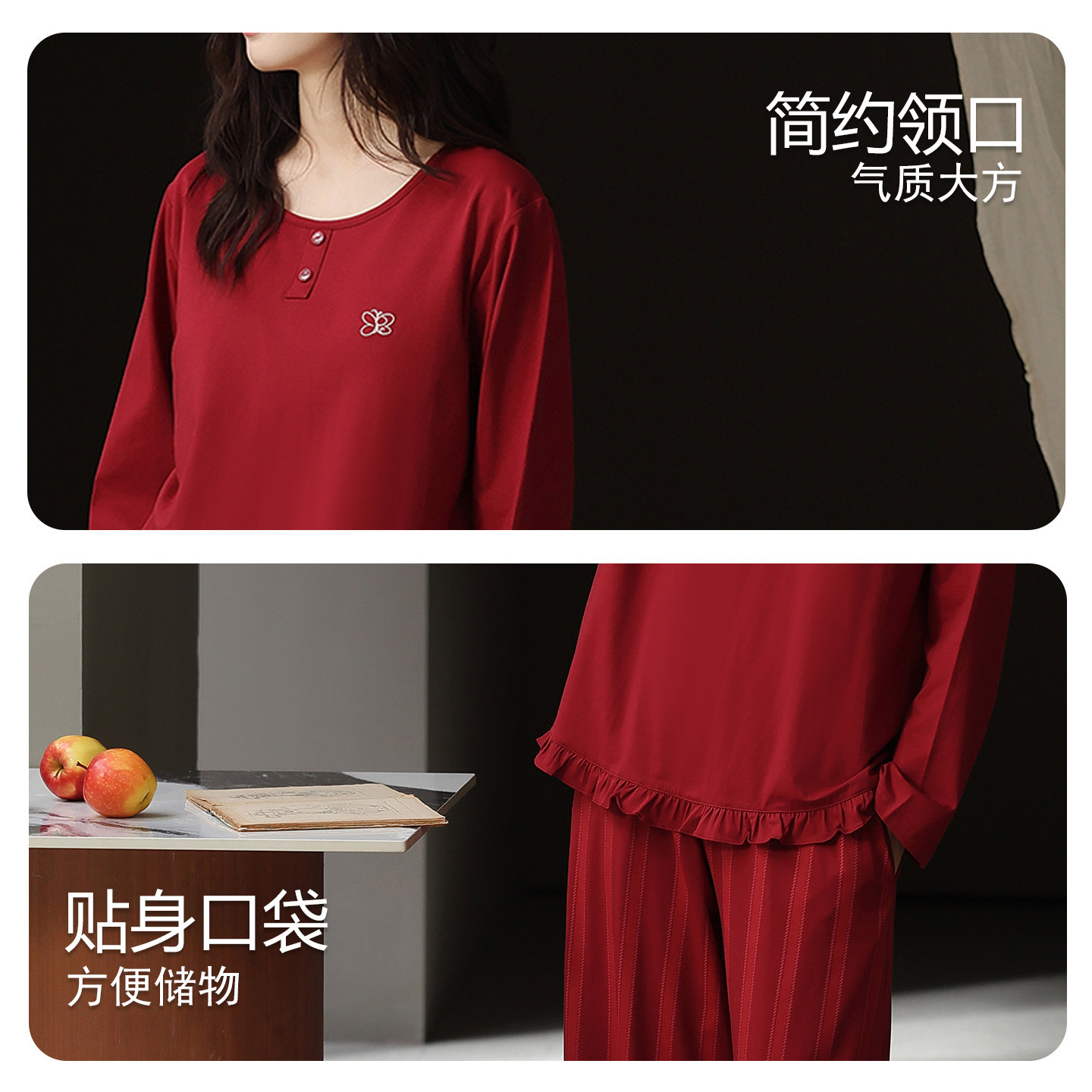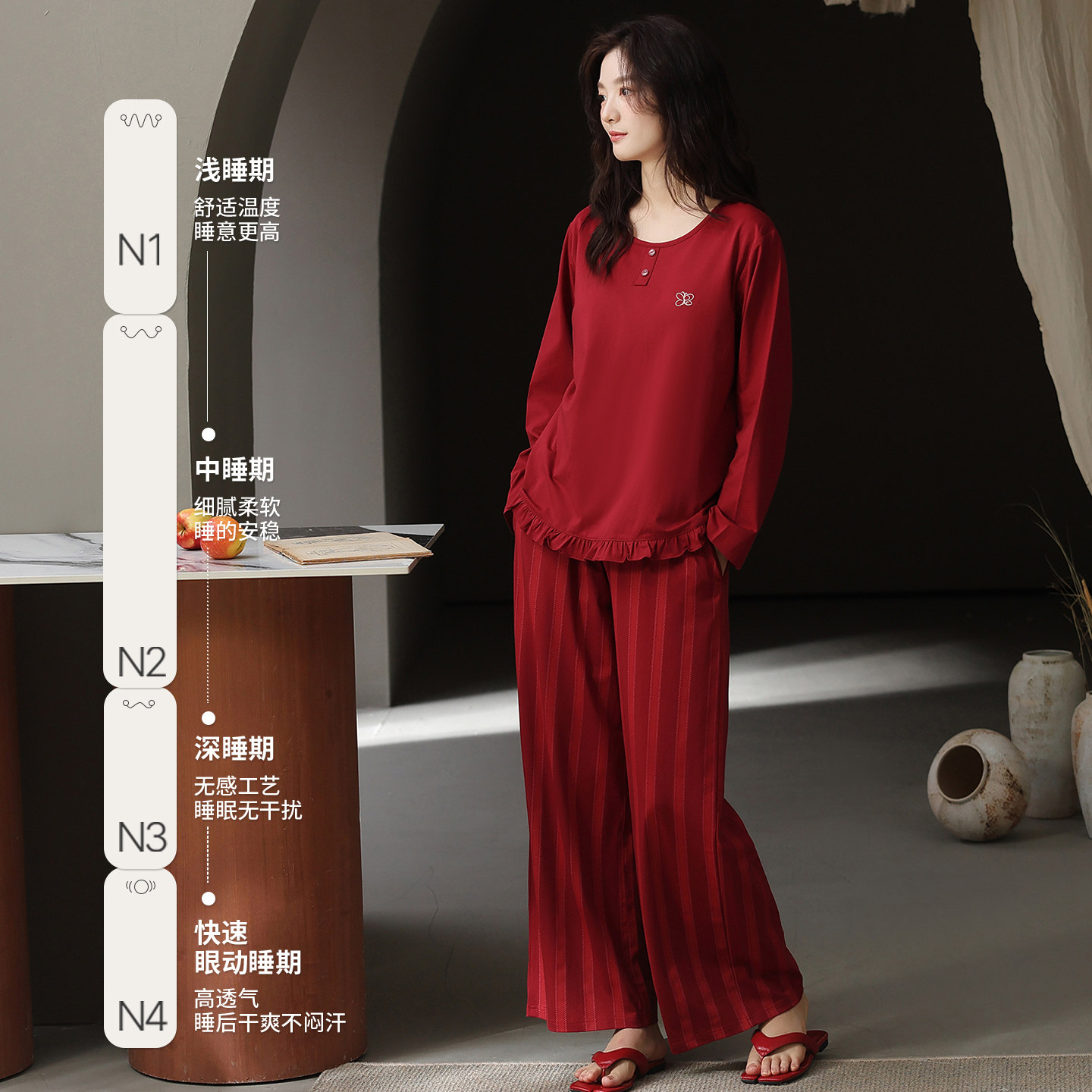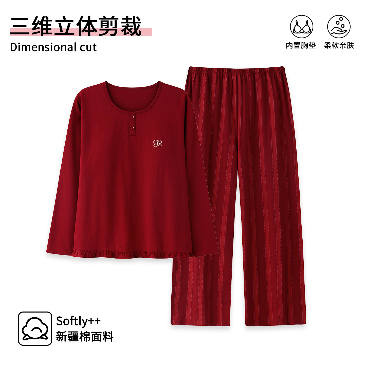 芬腾可安睡衣女款2026新款冬高级感秋季纯棉带胸垫长袖红色家居服