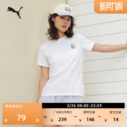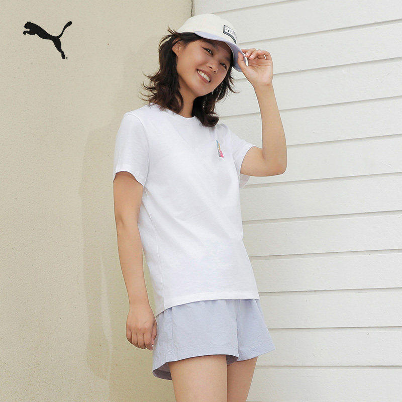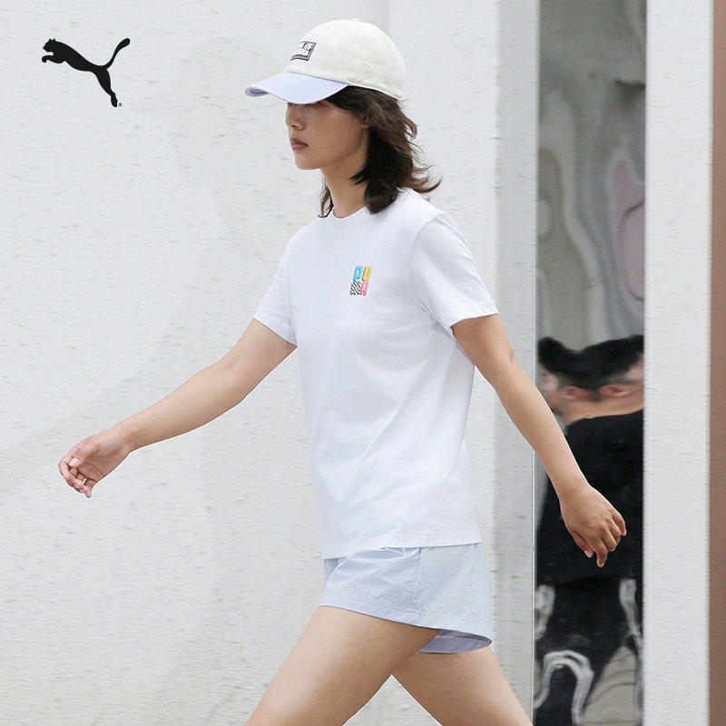 纯棉白色百搭休闲短袖T恤女款PUMA彪马官方新款夏季印花运动上衣