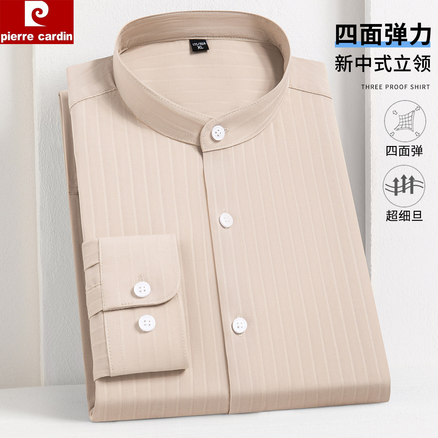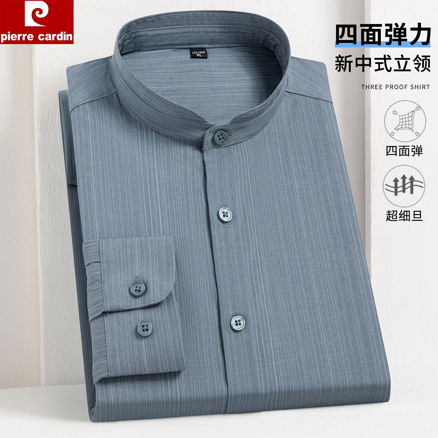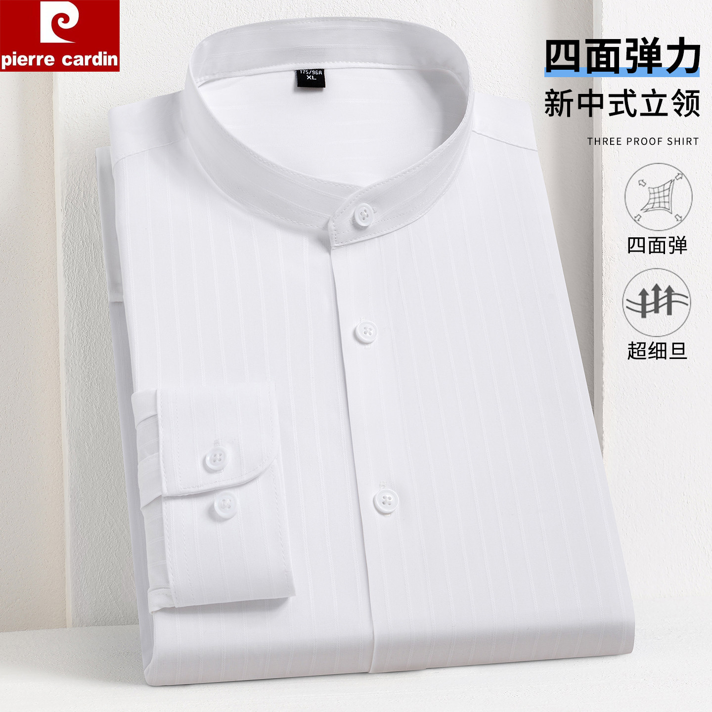 皮尔卡丹中华立领四面弹男衬衫