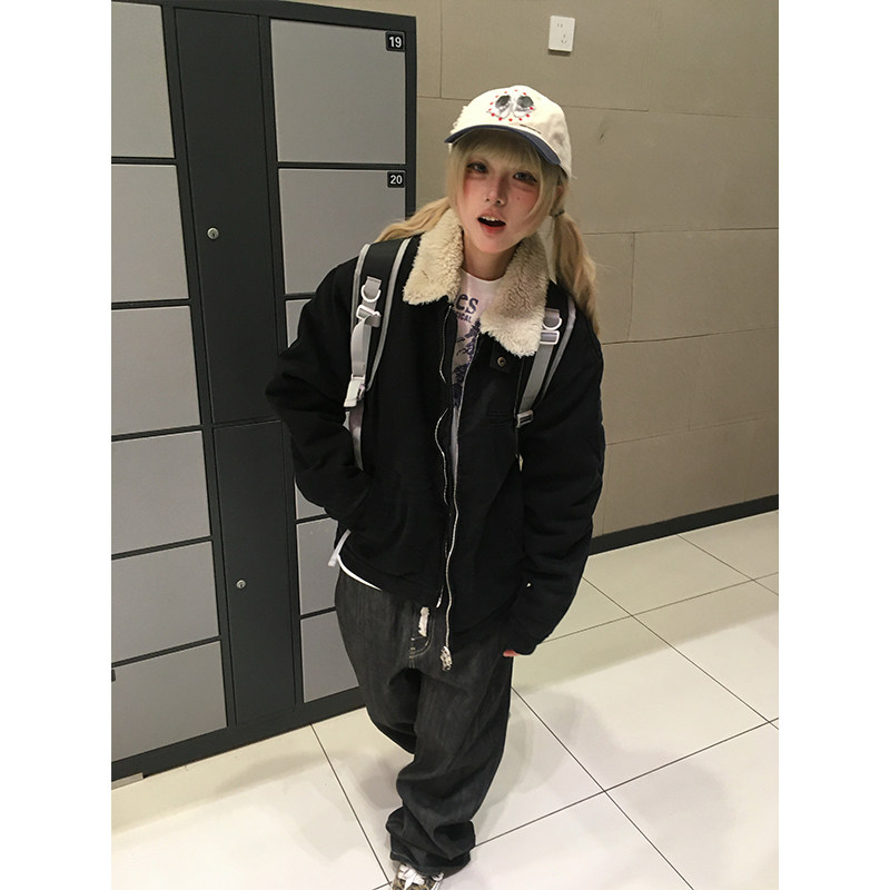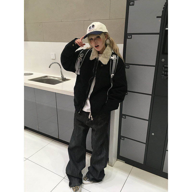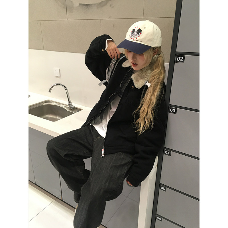 OPUP 美式复古cleanfit底特律棉夹克男女休闲重磅复古羊羔毛外套