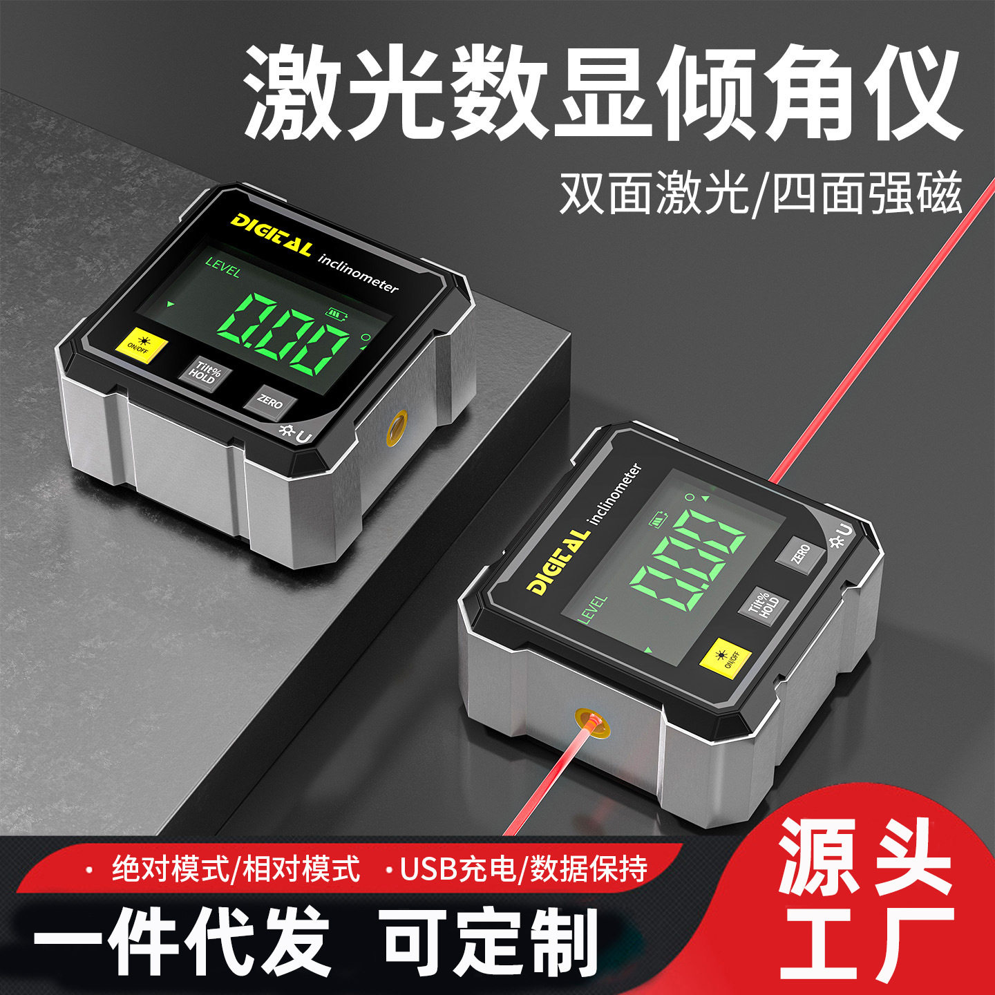 四面磁吸双侧激光倾角盒倾角仪激光水平仪小型坡度测量电子角度尺