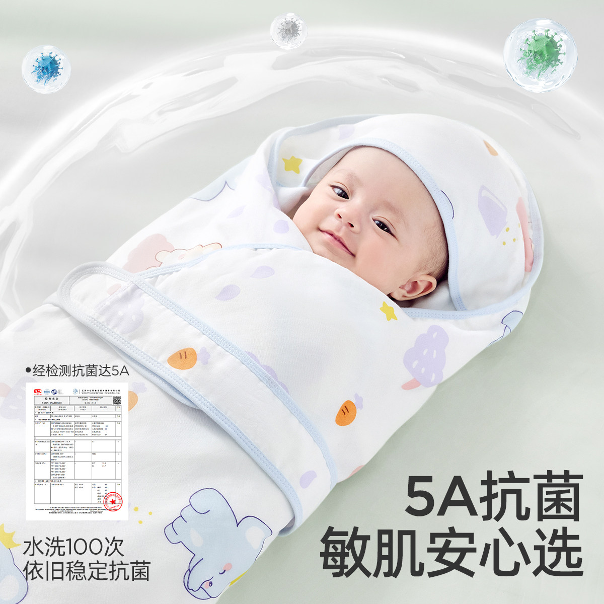 婧麒新生婴儿纯棉抱被春夏季薄款