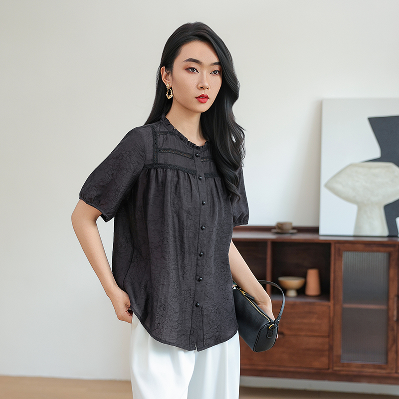 小香风气质显瘦短袖衬衫女
