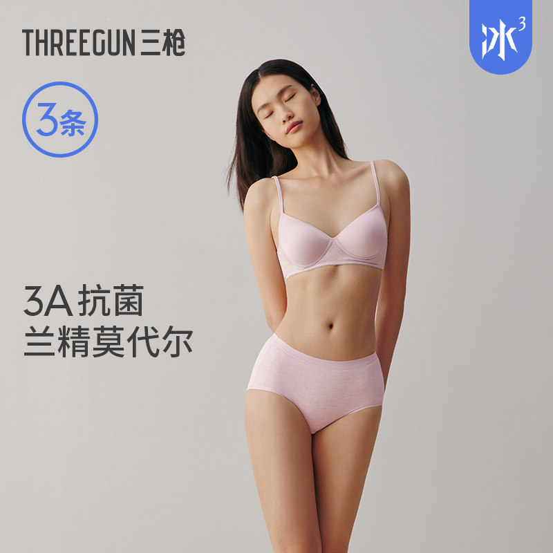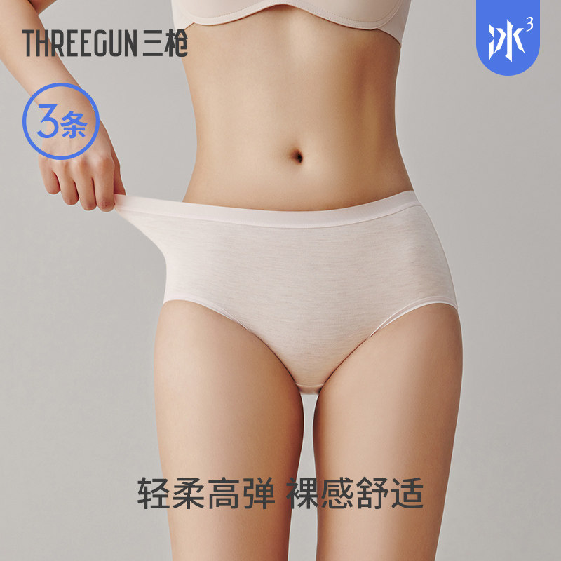 三枪女内裤莫代尔3A抗菌无痕薄款纯棉档丝滑高弹吸汗透气