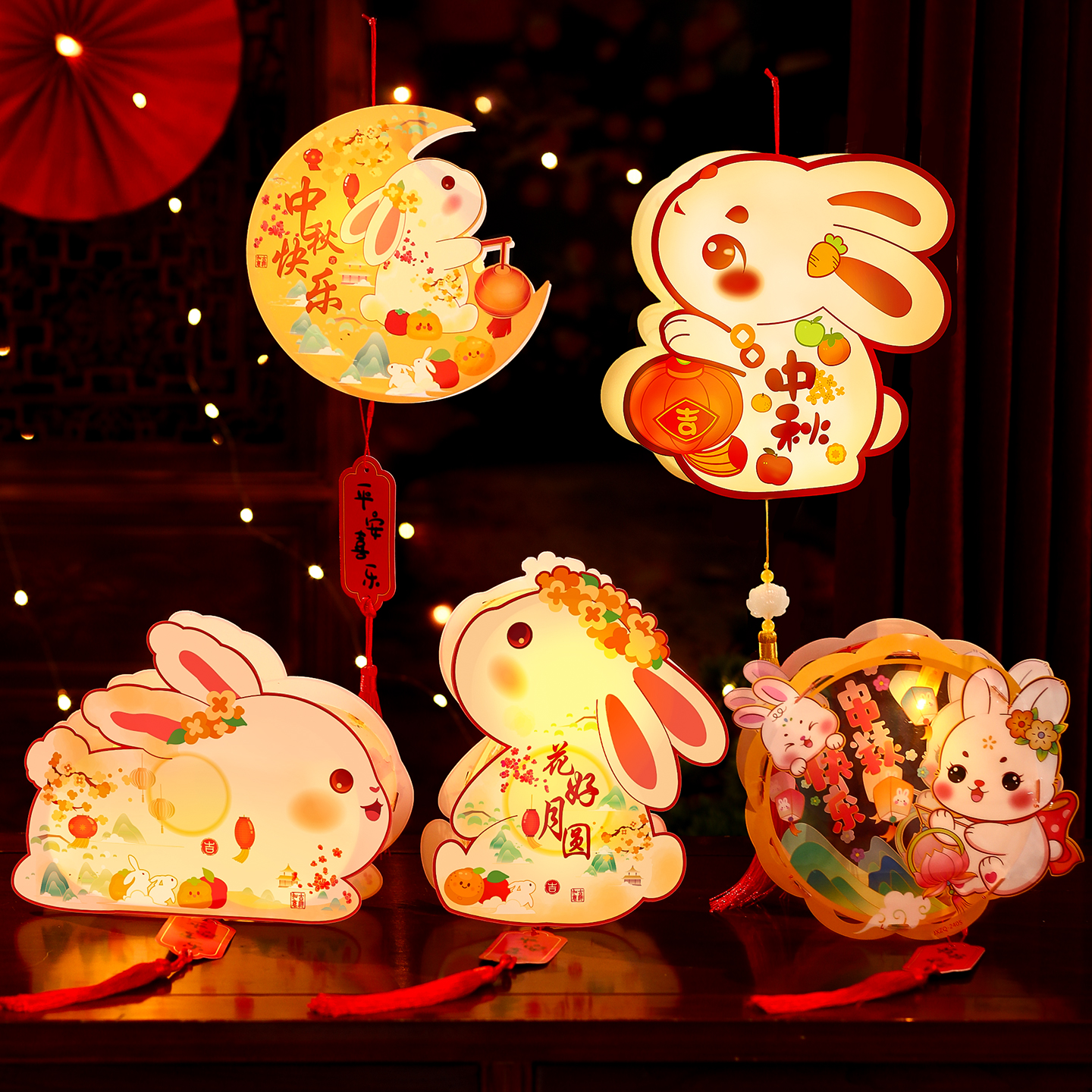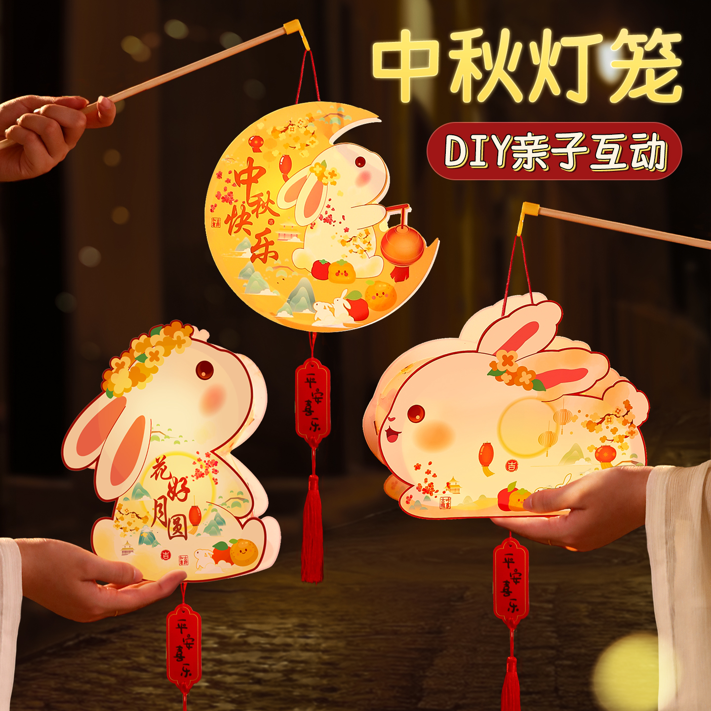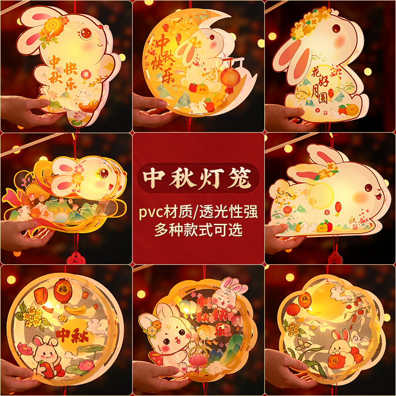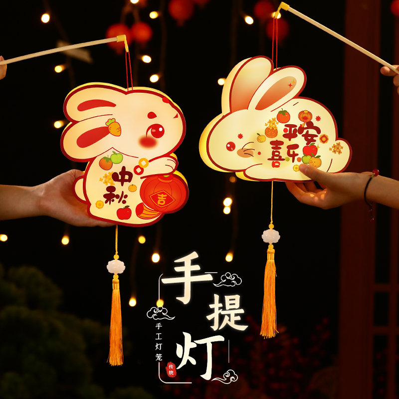2025新款中秋节儿童手提灯笼手工diy材料包兔子古风发光非遗花灯