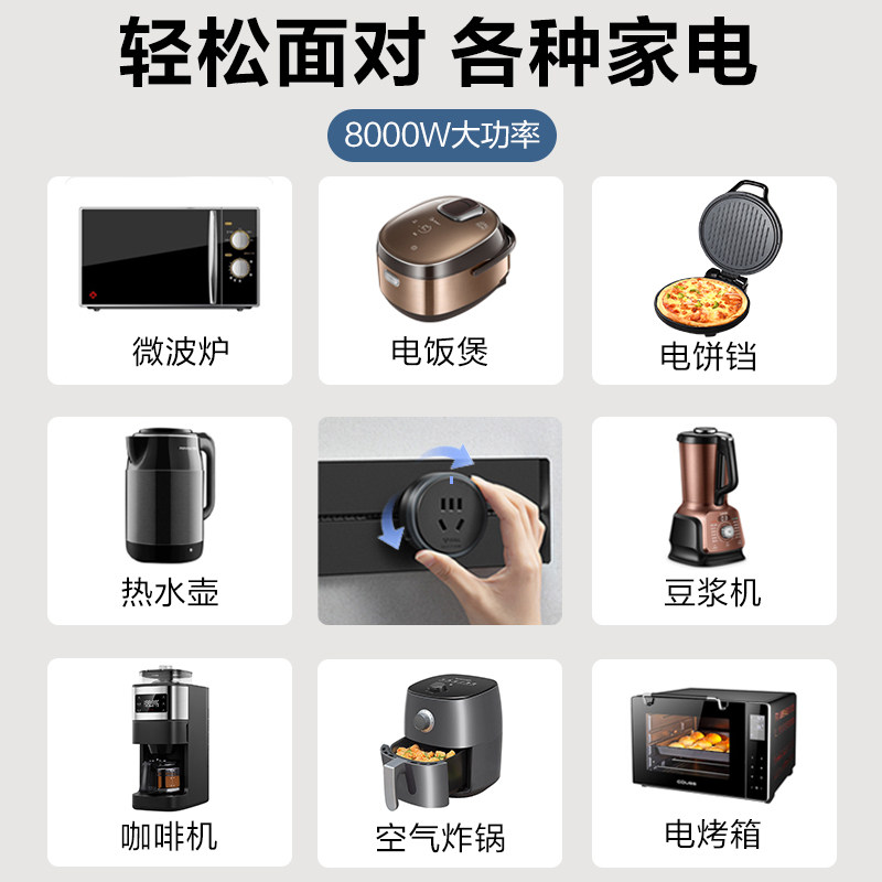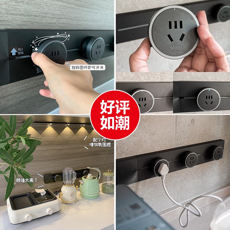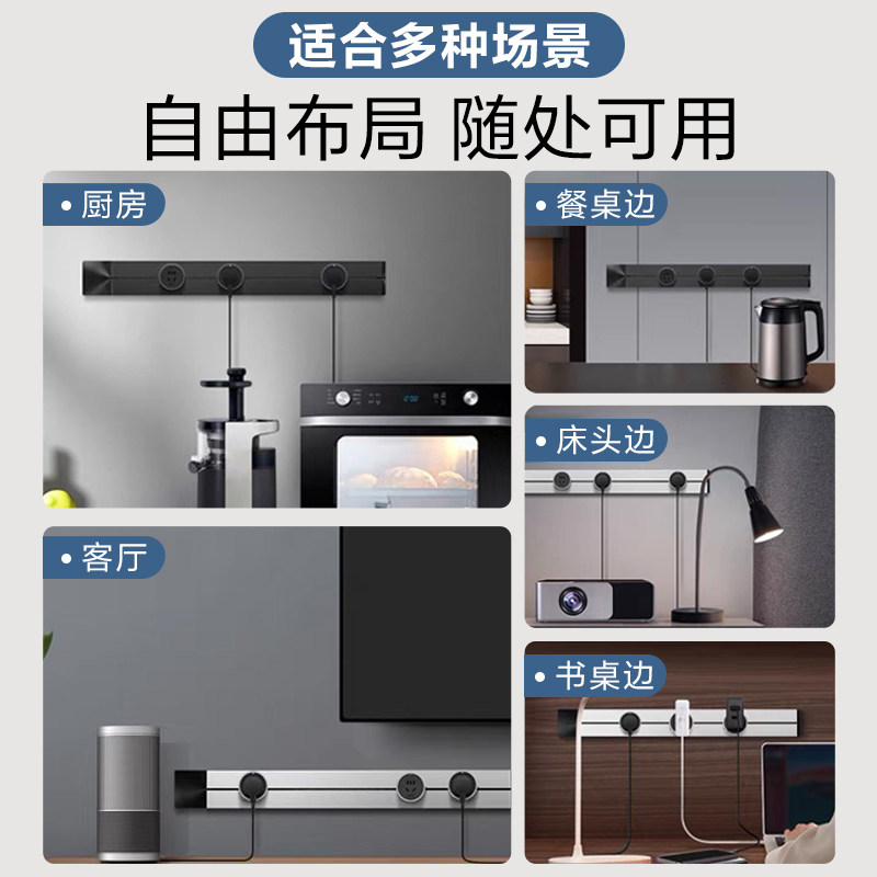 公牛移动轨道插座厨房客厅餐边柜无线明暗装导轨排插家用滑轨插座