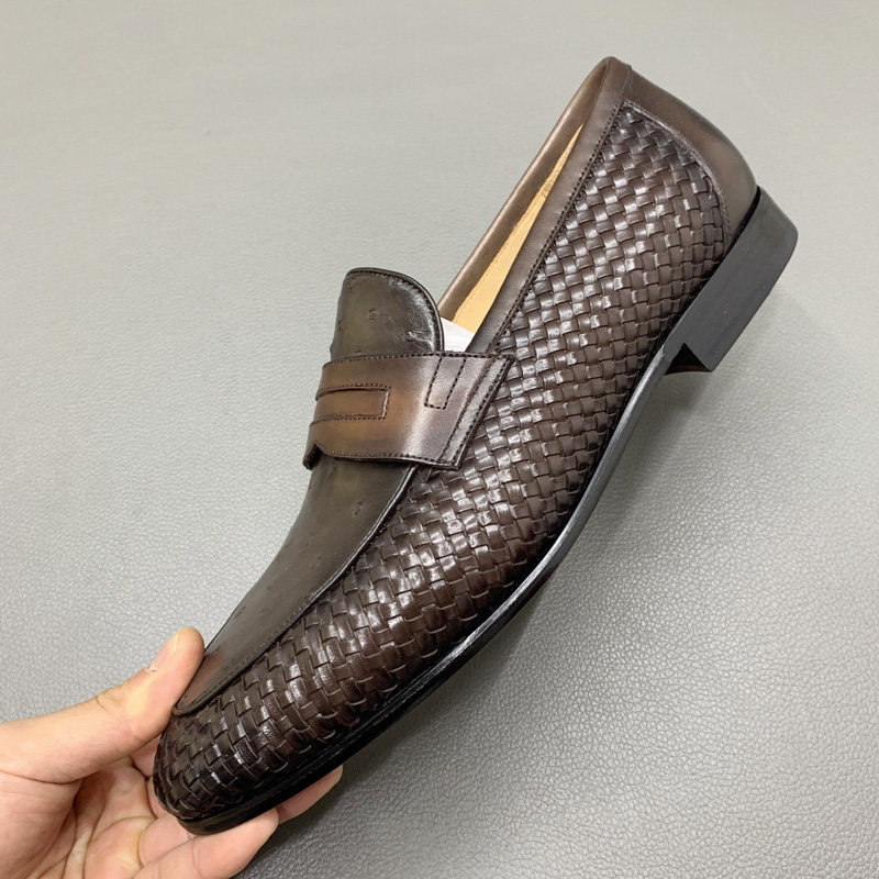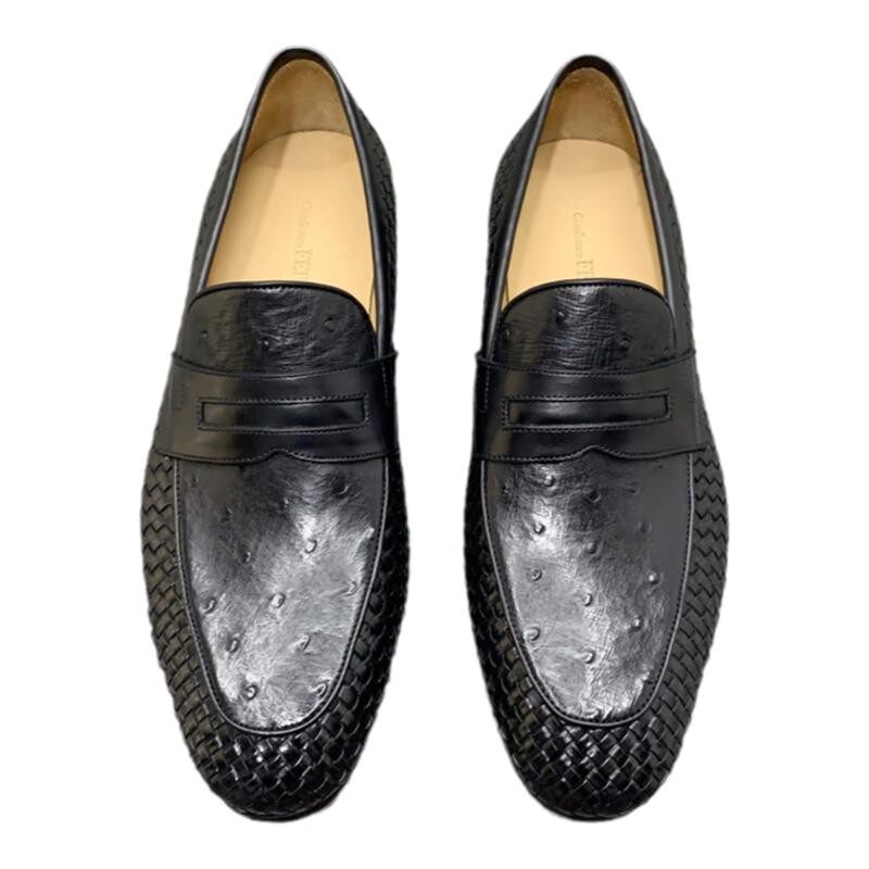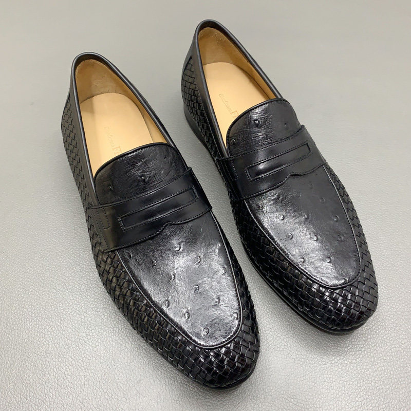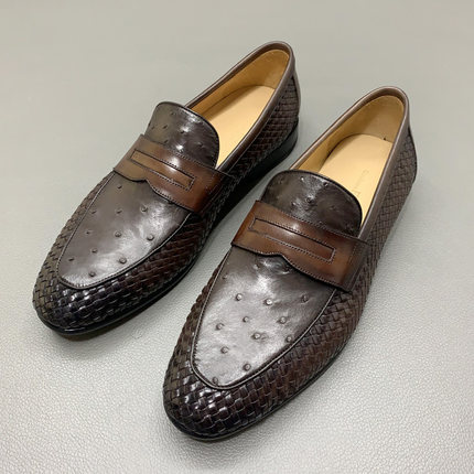 商场撤柜意大利鸵鸟皮加牛皮套脚商务休闲皮鞋男全皮底缝制上线