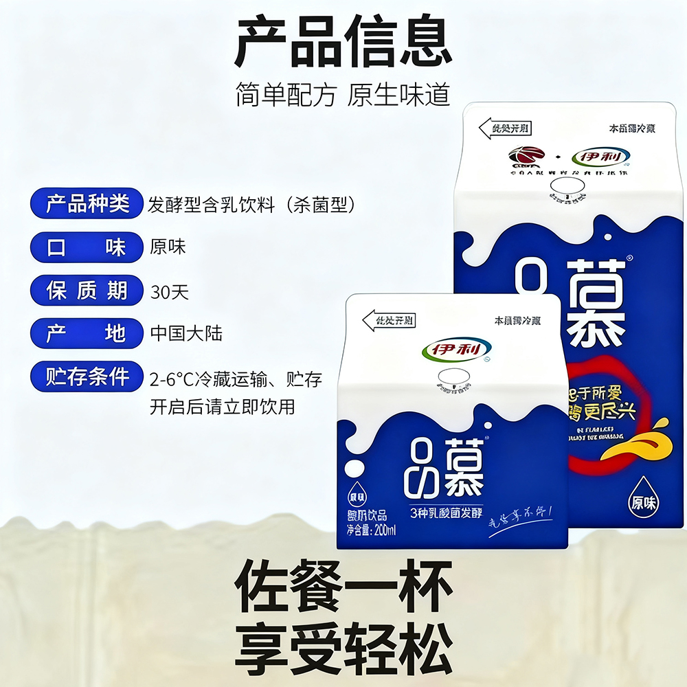 伊利品慕原味酸奶458ml*4盒3种乳酸菌低温发酵盒装风味饮品正品