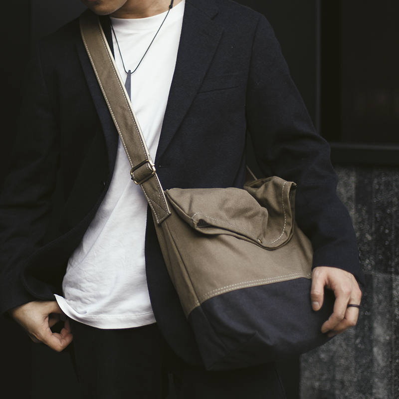 sobag卡其色U家同款帆布斜挎大包男中性日系潮牌邮差包潮酷工装包