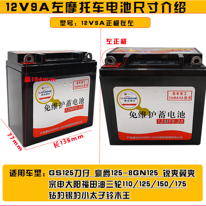 适用隆鑫大阳福田宗申110-175三轮摩托车免维护蓄电池12V9A干电瓶