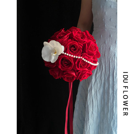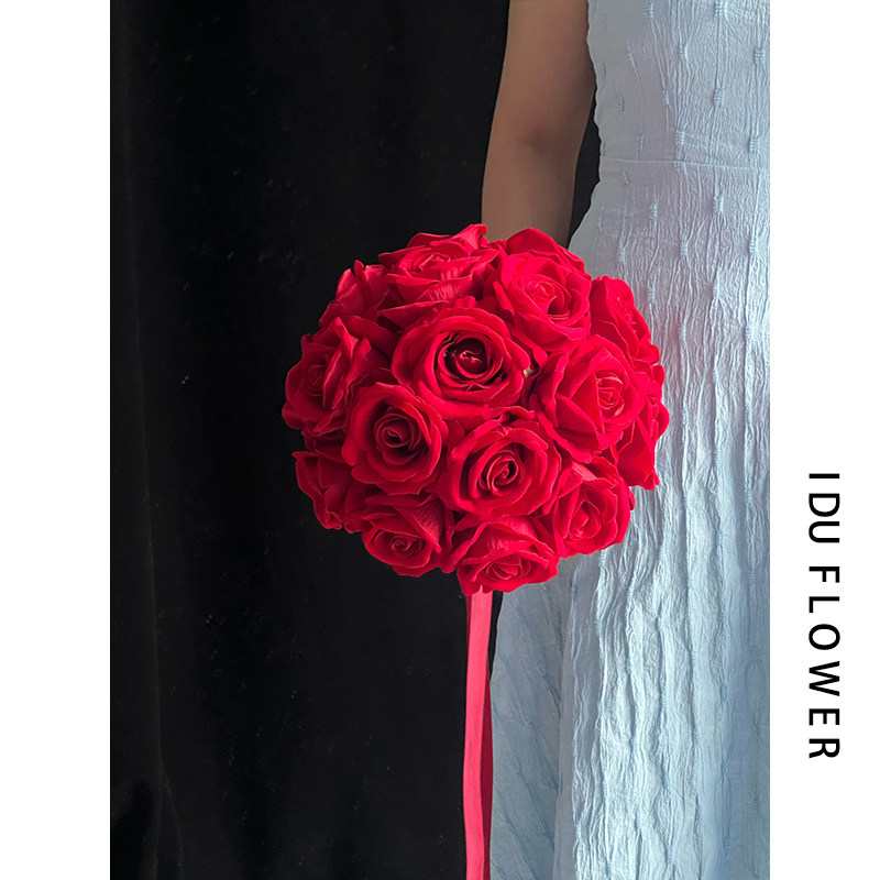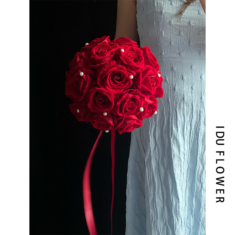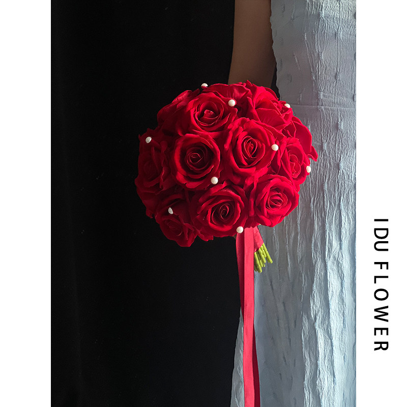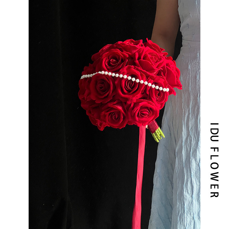 手捧花领证登记花束新娘婚礼假花高级仿真复古红玫瑰影楼拍照道具