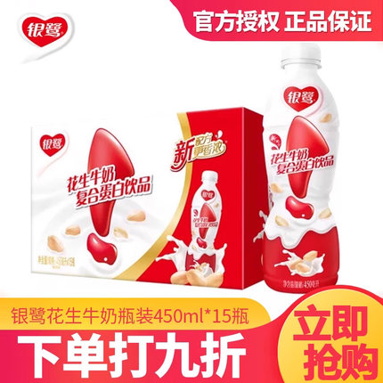 银鹭花生牛奶450ml*15瓶装整箱复合蛋白饮料原味奶特价清仓价
