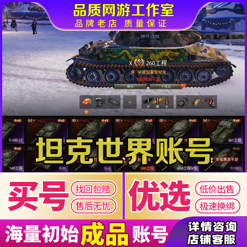 坦克世界帐号成品号360国服高级账号金银币车秃酋279白云黄金买卖