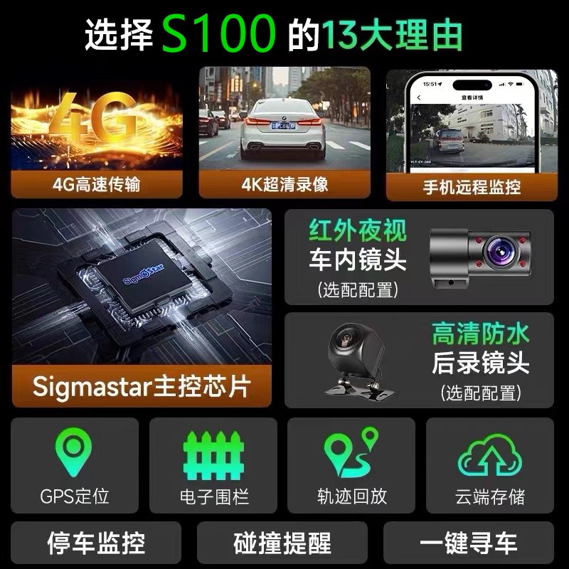 2025款4K高清行车记录仪4G远程监控带GPS定位车辆停车车内外双录