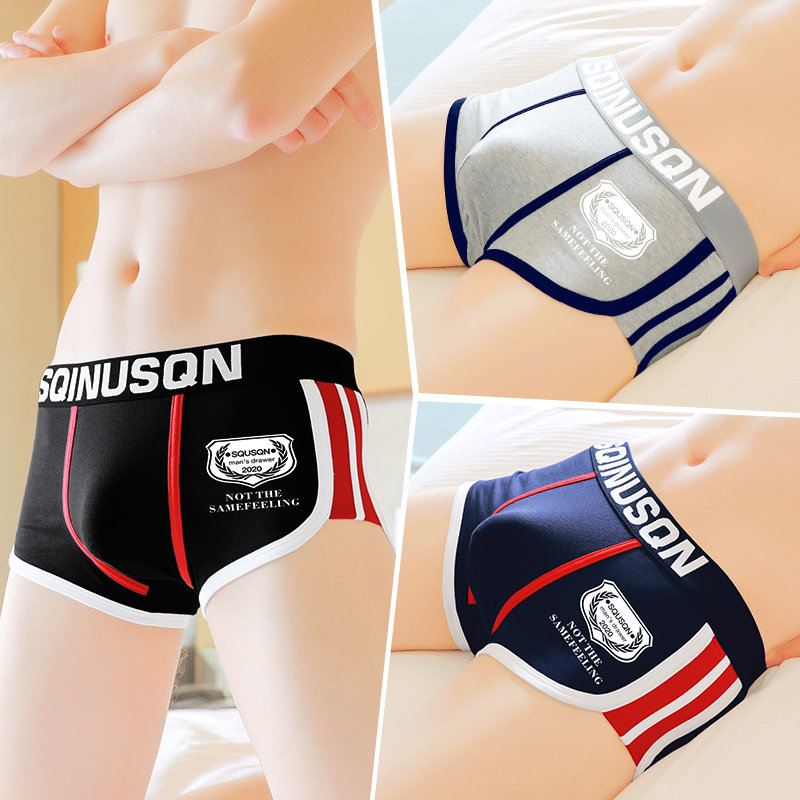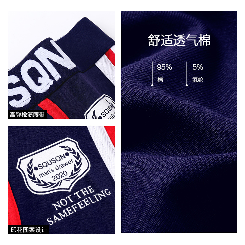 男士内裤男纯棉平角裤潮流个性四角裤头舒适透气运动短裤衩男青年