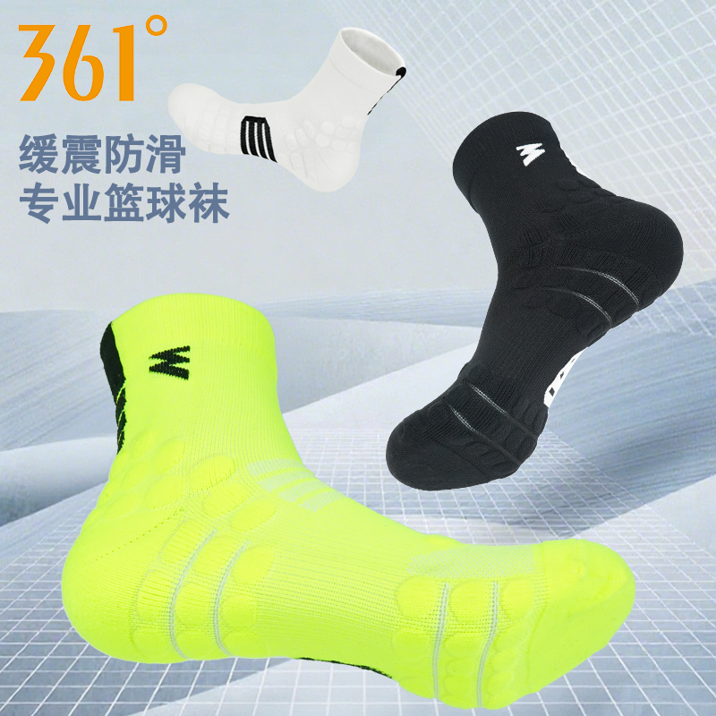361飞燃专业体考体测袜运动袜子毛巾底透气吸汗长筒训练跑步袜男
