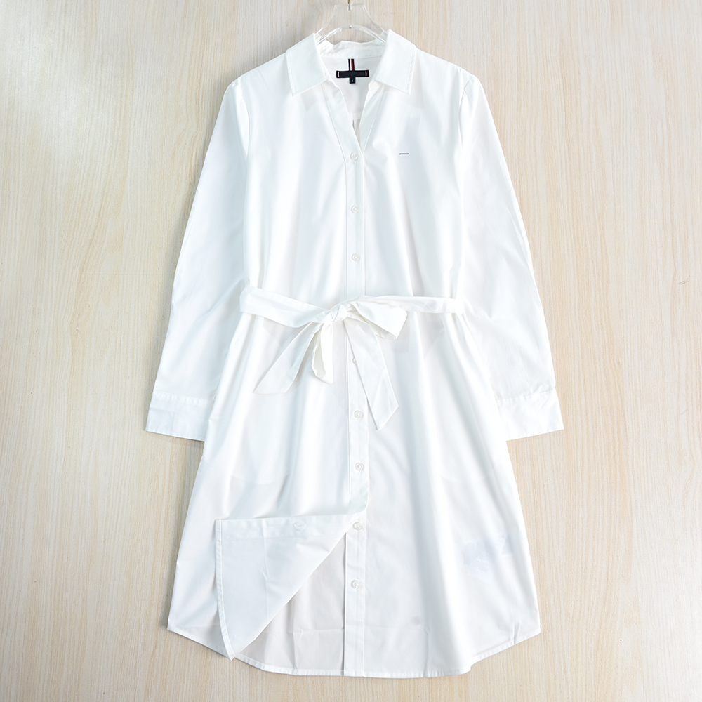 思琪女装259/15 美汤系气质通勤风棉质刺绣衬衫式修身长袖连衣裙