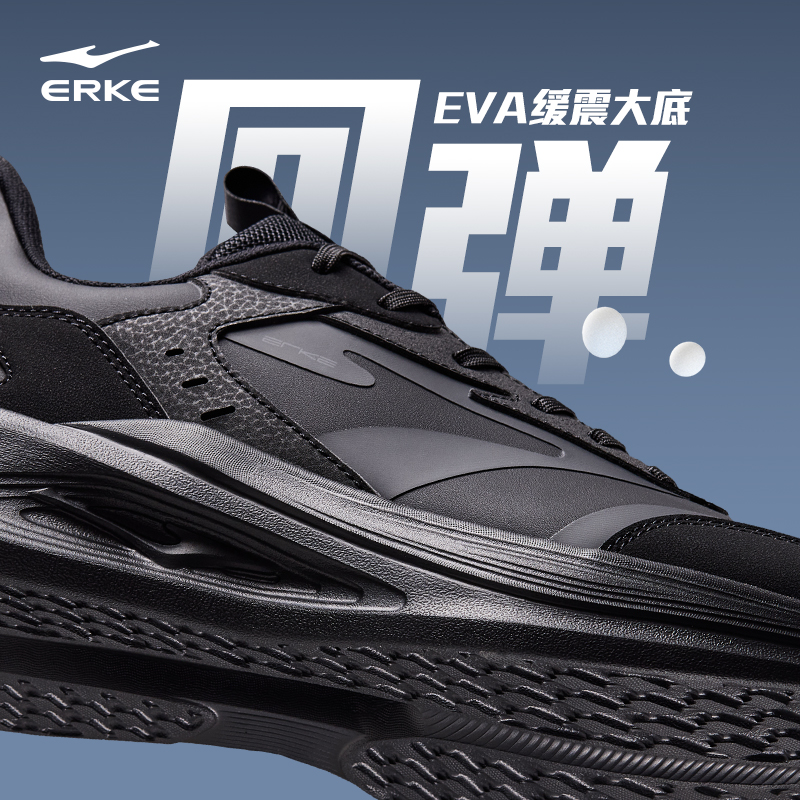 鸿星尔克减震跑步鞋秋冬男鞋软底运动鞋新款黑色男公务鞋轻便跑鞋