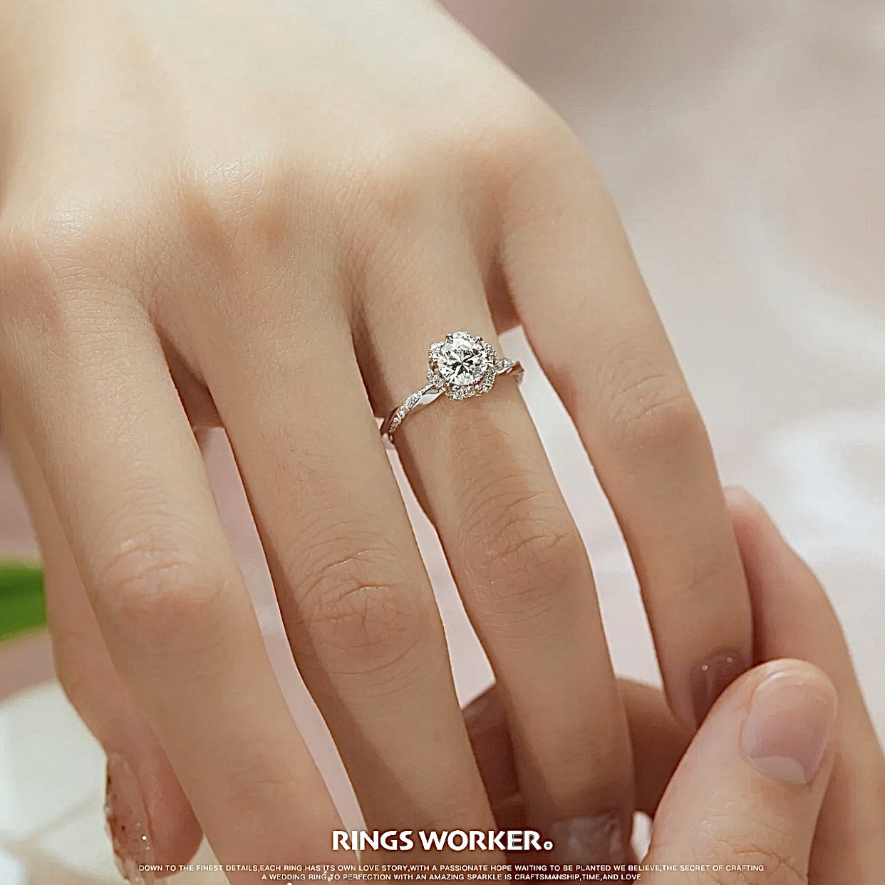 正品18K金培育钻石戒指女《虞美人》精致手捧花钻戒婚礼结婚婚戒