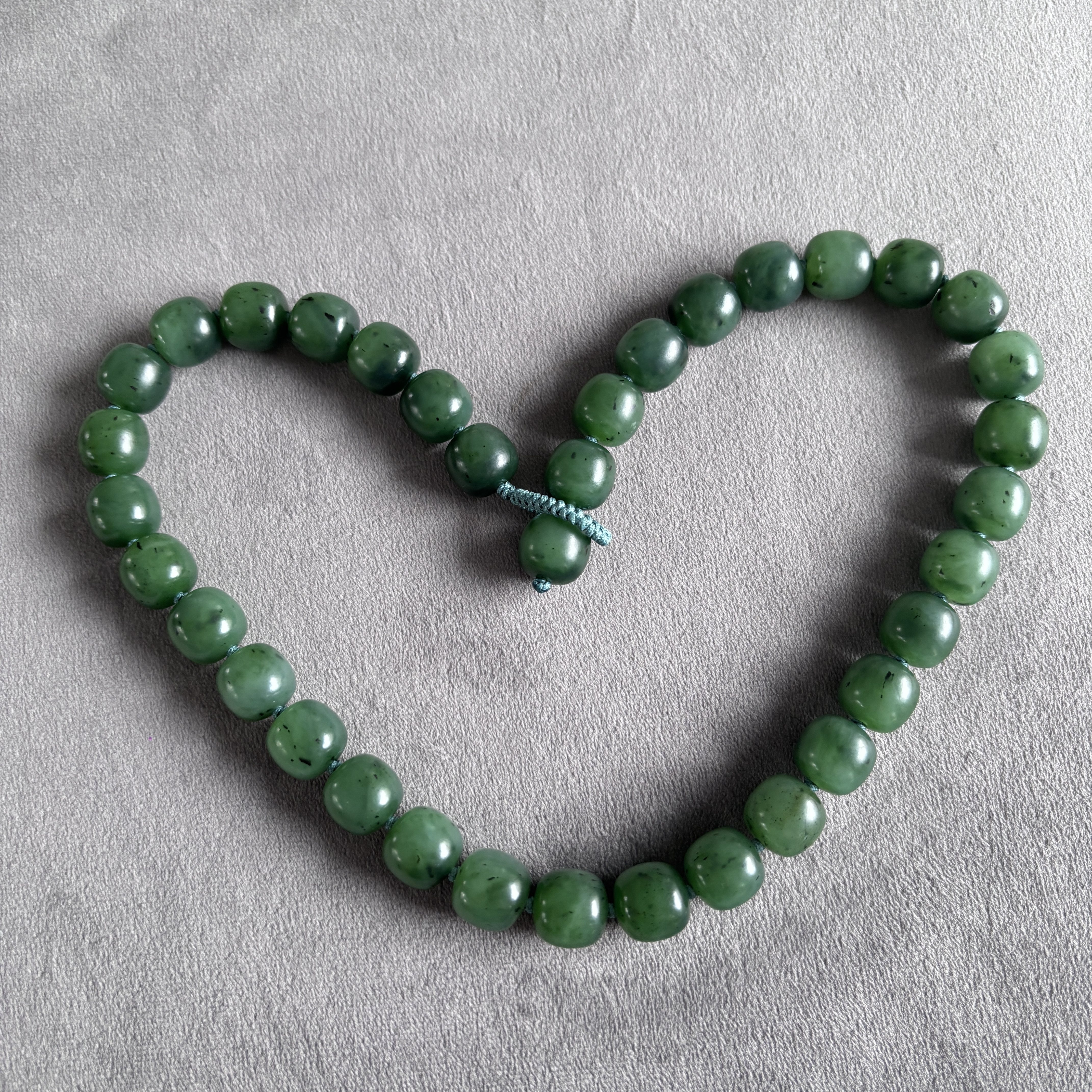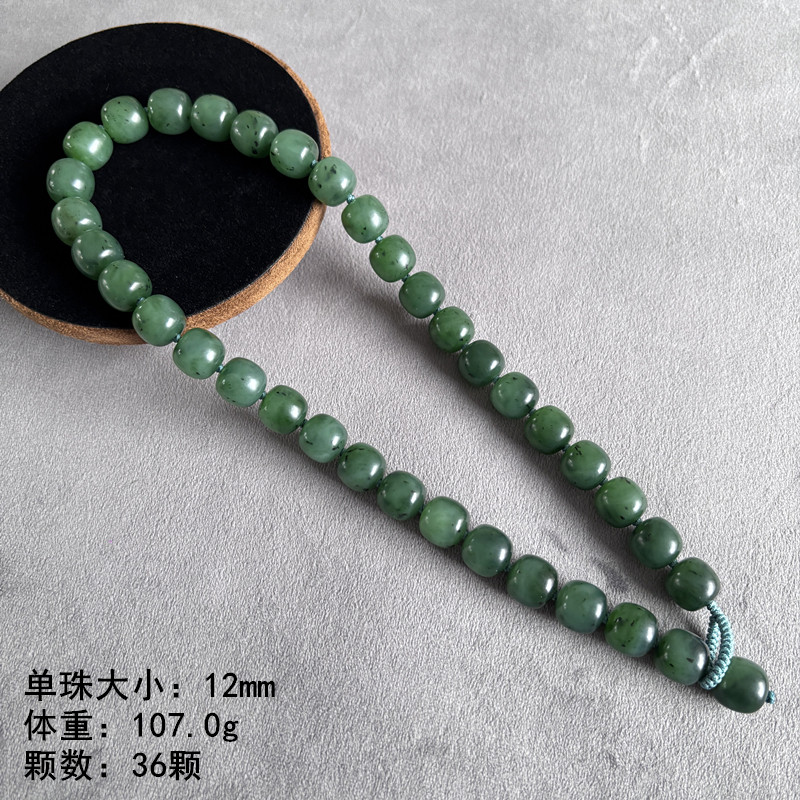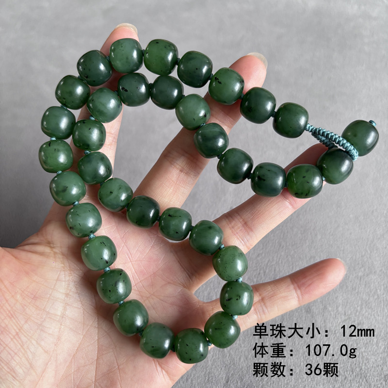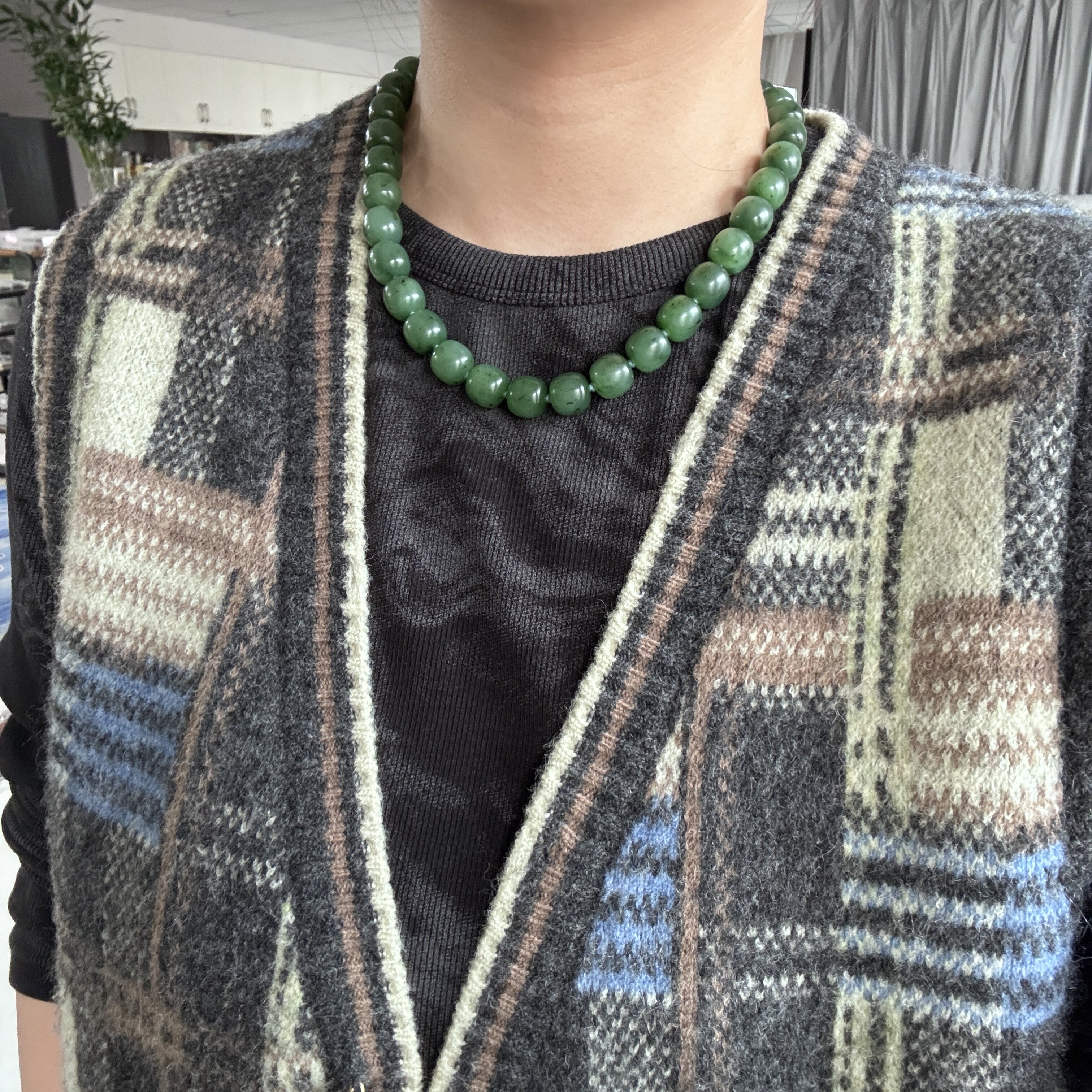 12mm碧玉籽料老型珠项链微瑕 无原皮 朕®开仓 新疆和田玉