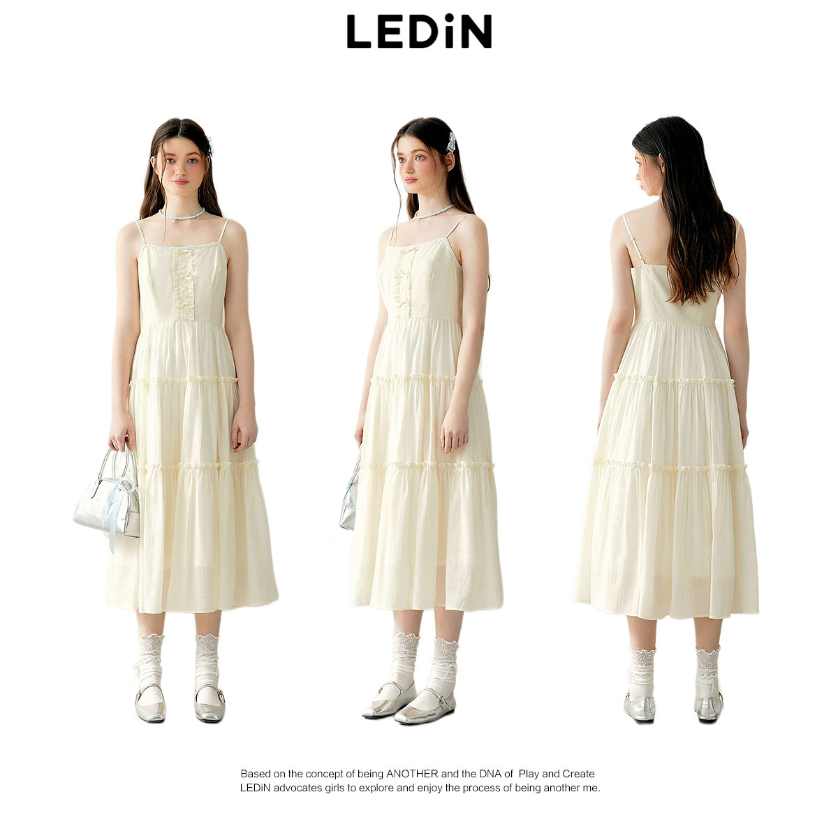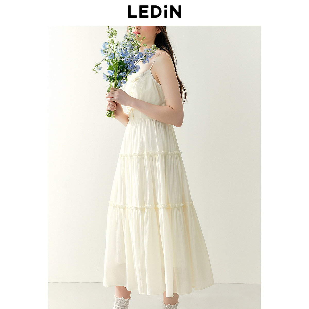乐町精致吊带连衣裙春季新款飘逸仙女长裙香风气质内搭连衣裙