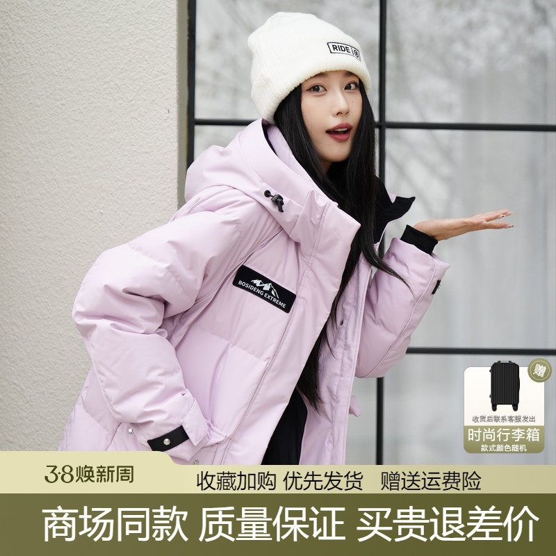 波司登2025冬季新款女士短款鹅绒连帽加厚极寒系列时尚粉色羽绒服