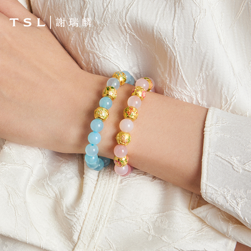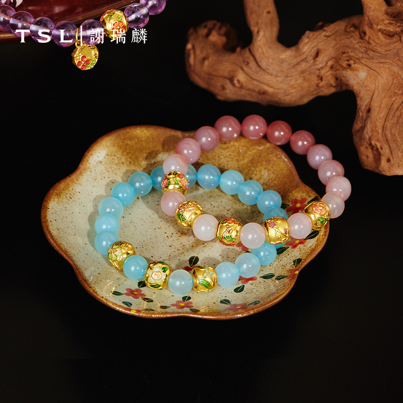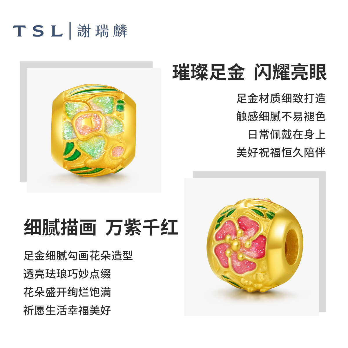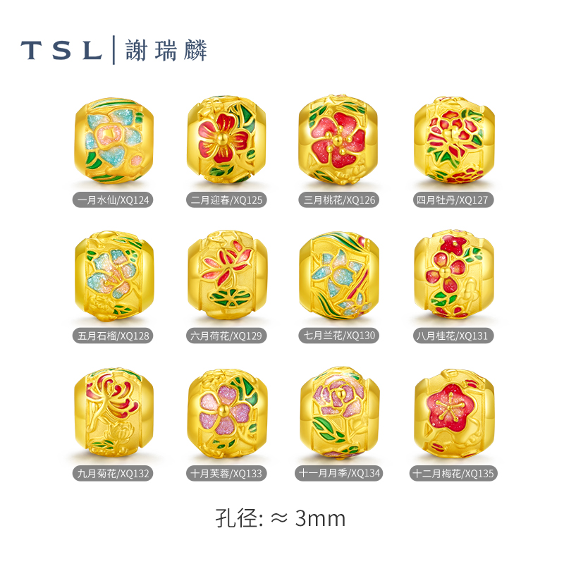 【百亿补贴】TSL谢瑞麟十二花神5D硬金珐琅黄金转运珠XQ124-XQ135