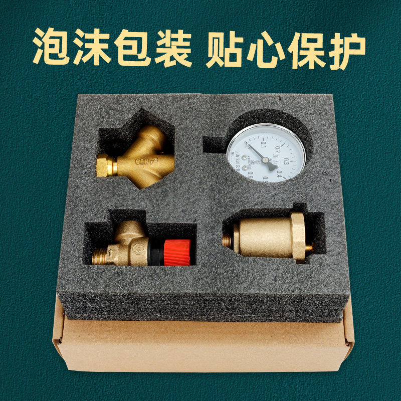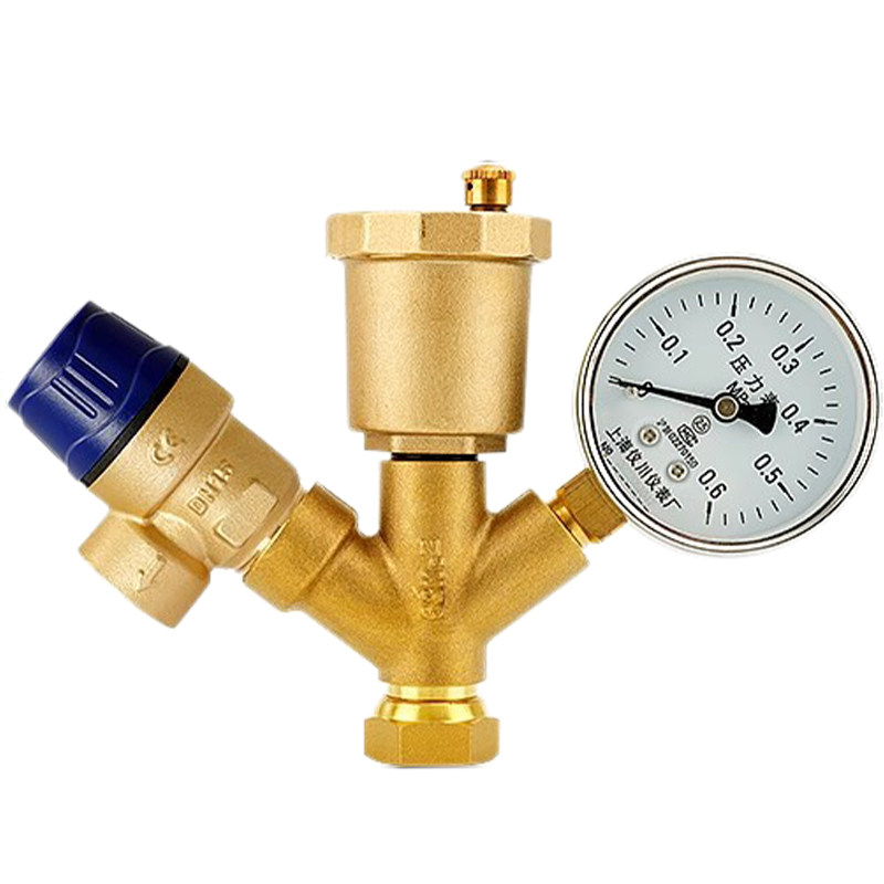 锅炉泄压阀空气能安全组件自动排气水箱一体安全阀压力表1寸4分铜